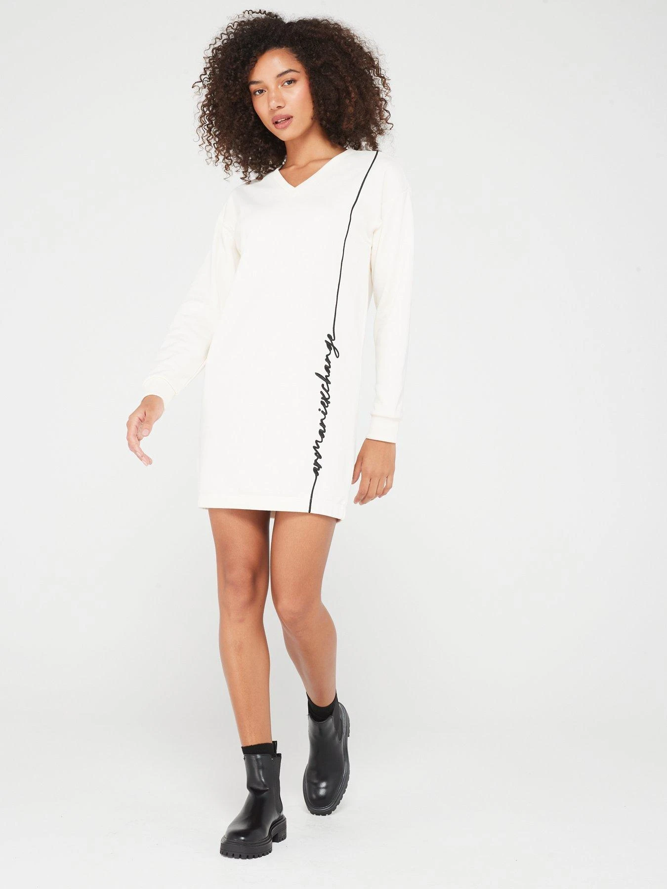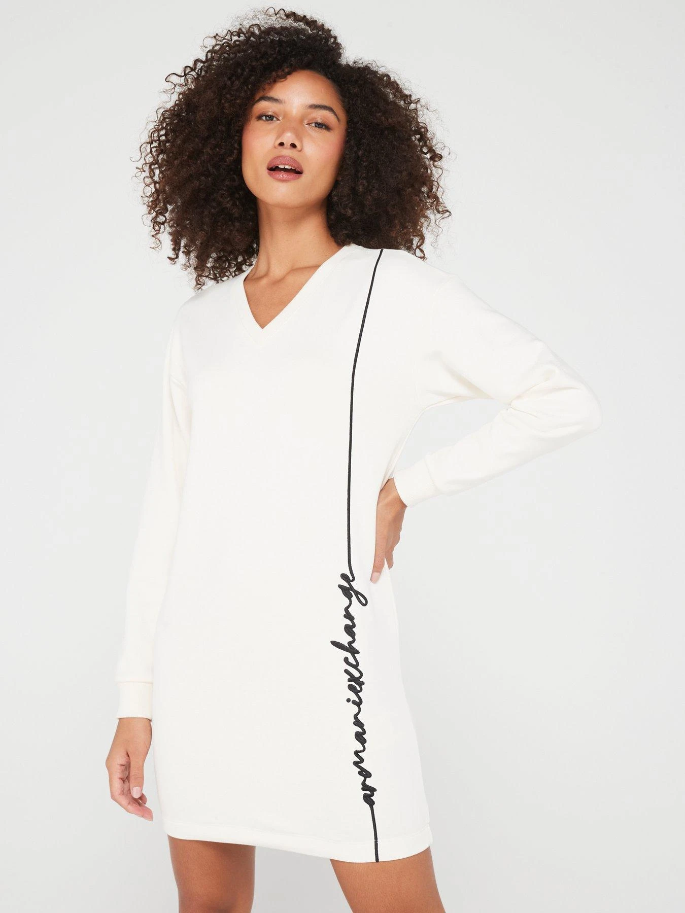 Armani Exchange Script Logo V-neck Jersey Dress – Cream