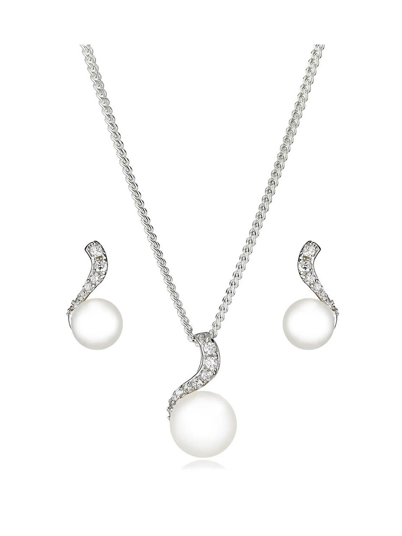 Beaverbrooks Silver Cubic Zirconia Freshwater Cultured Pearl Pendant and Earrings Set
