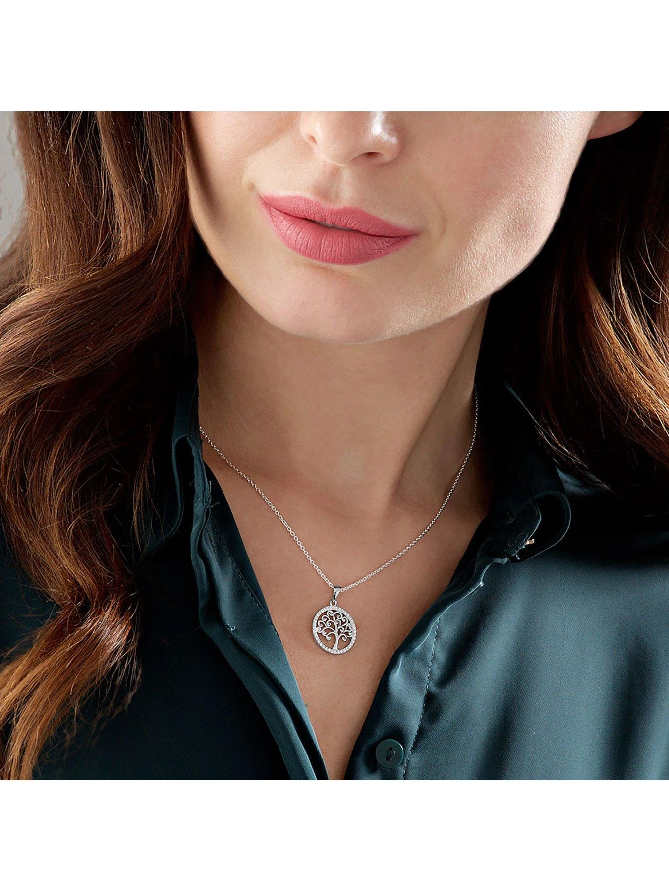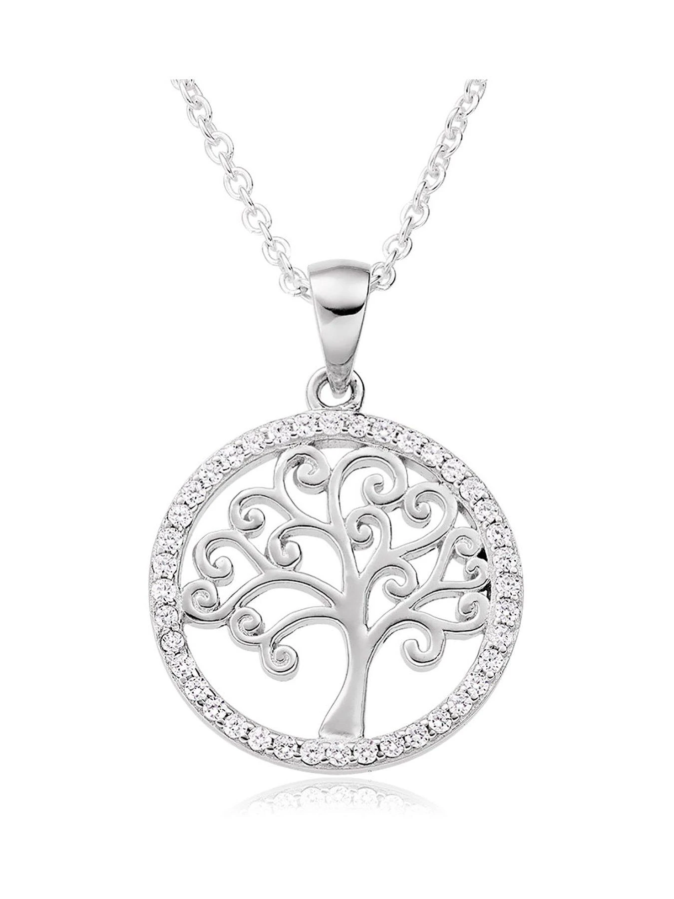 Beaverbrooks Silver Cubic Zirconia Tree Pendant