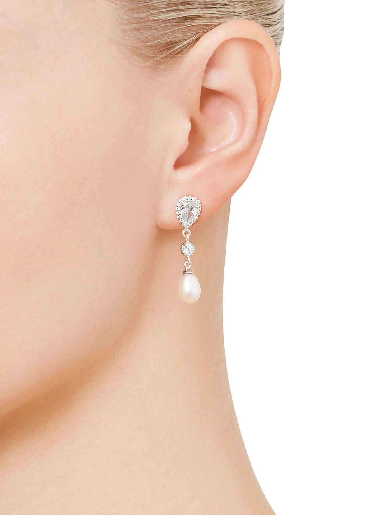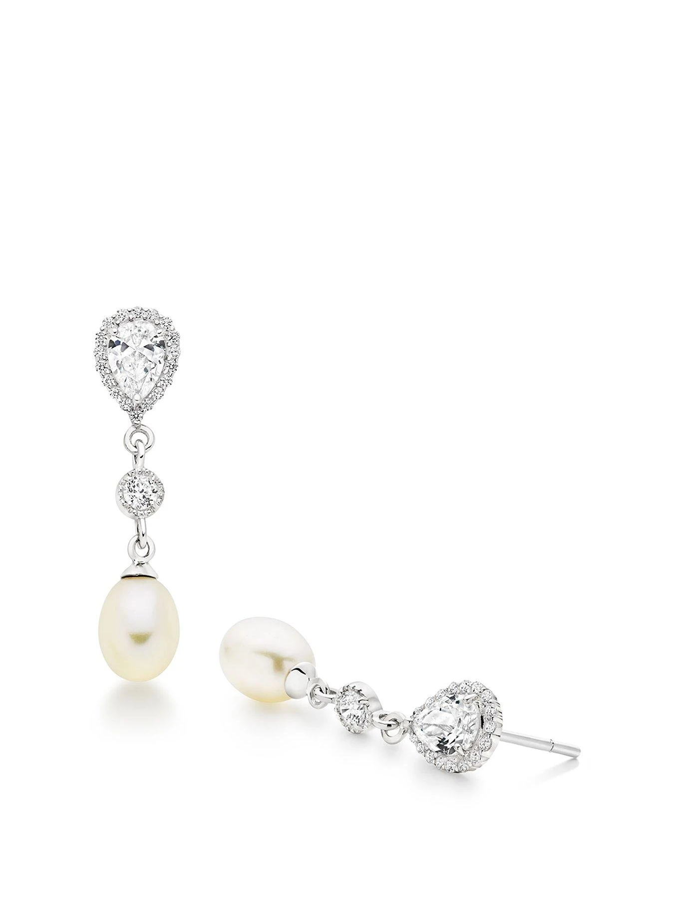 Beaverbrooks Silver Freshwater Cultured Pearl Cubic Zirconia Drop Earrings