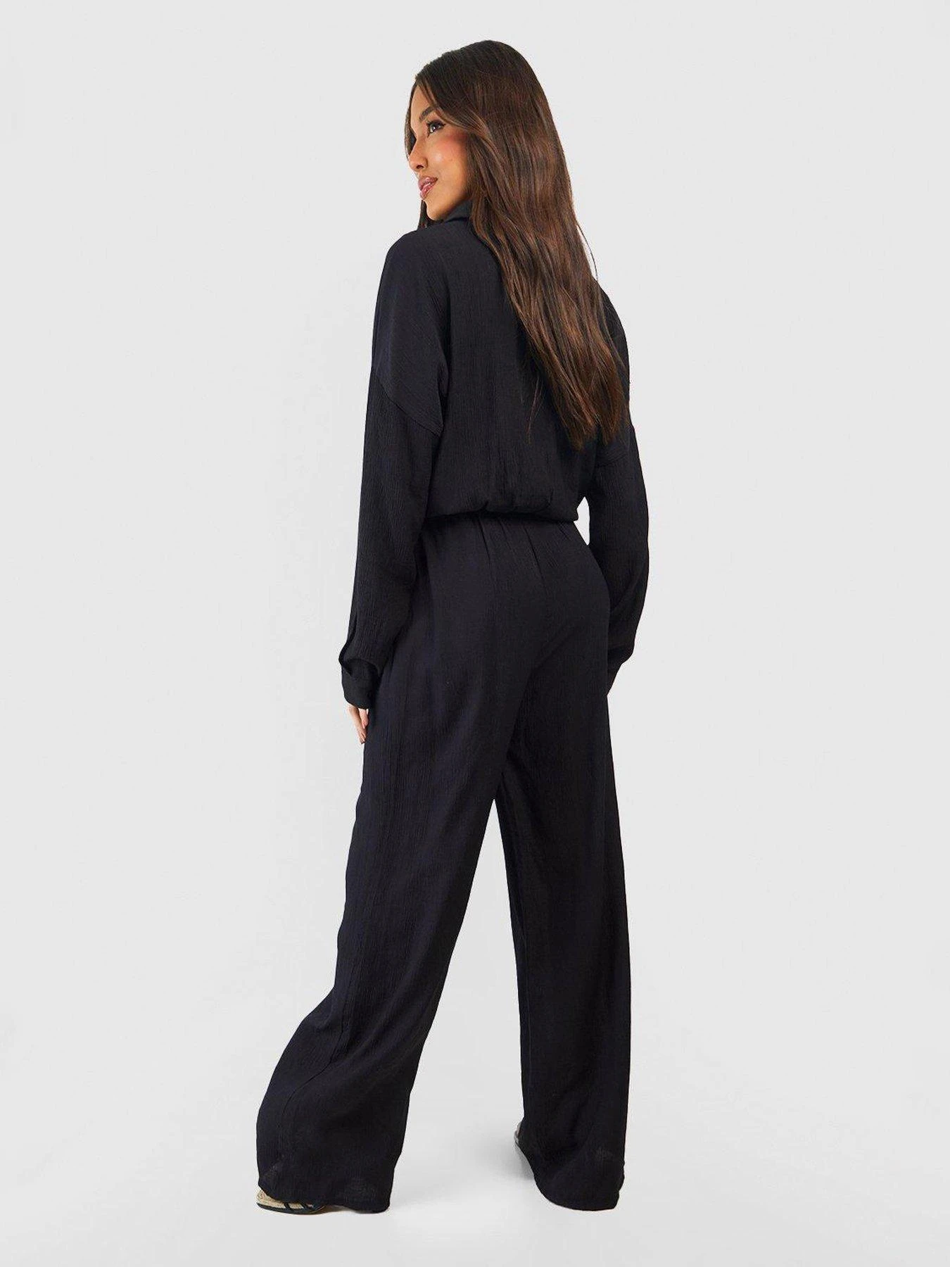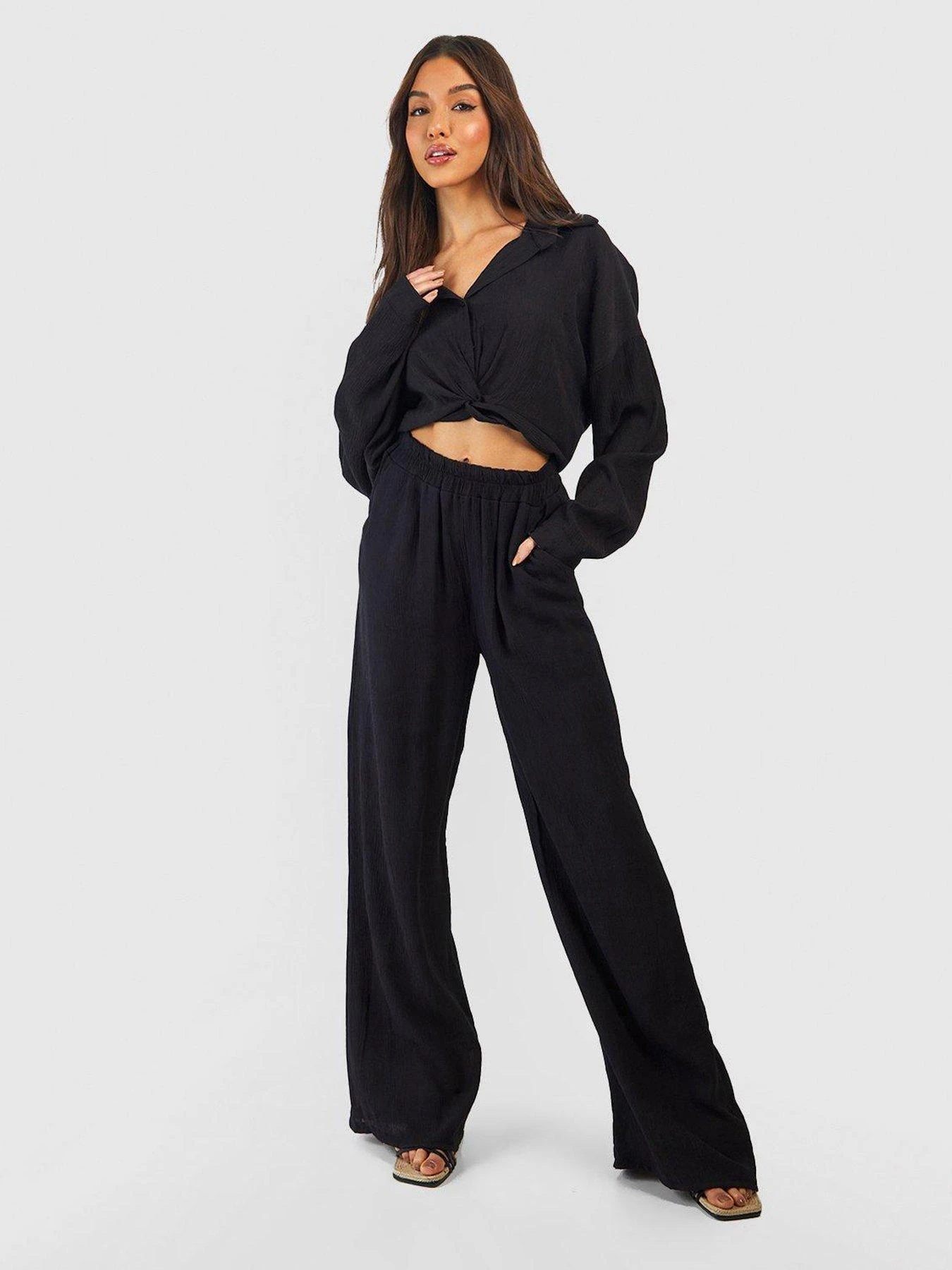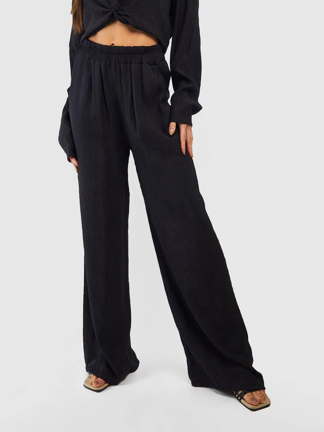 Boohoo Crinkle Relaxed Wide Leg Trousers – Black
