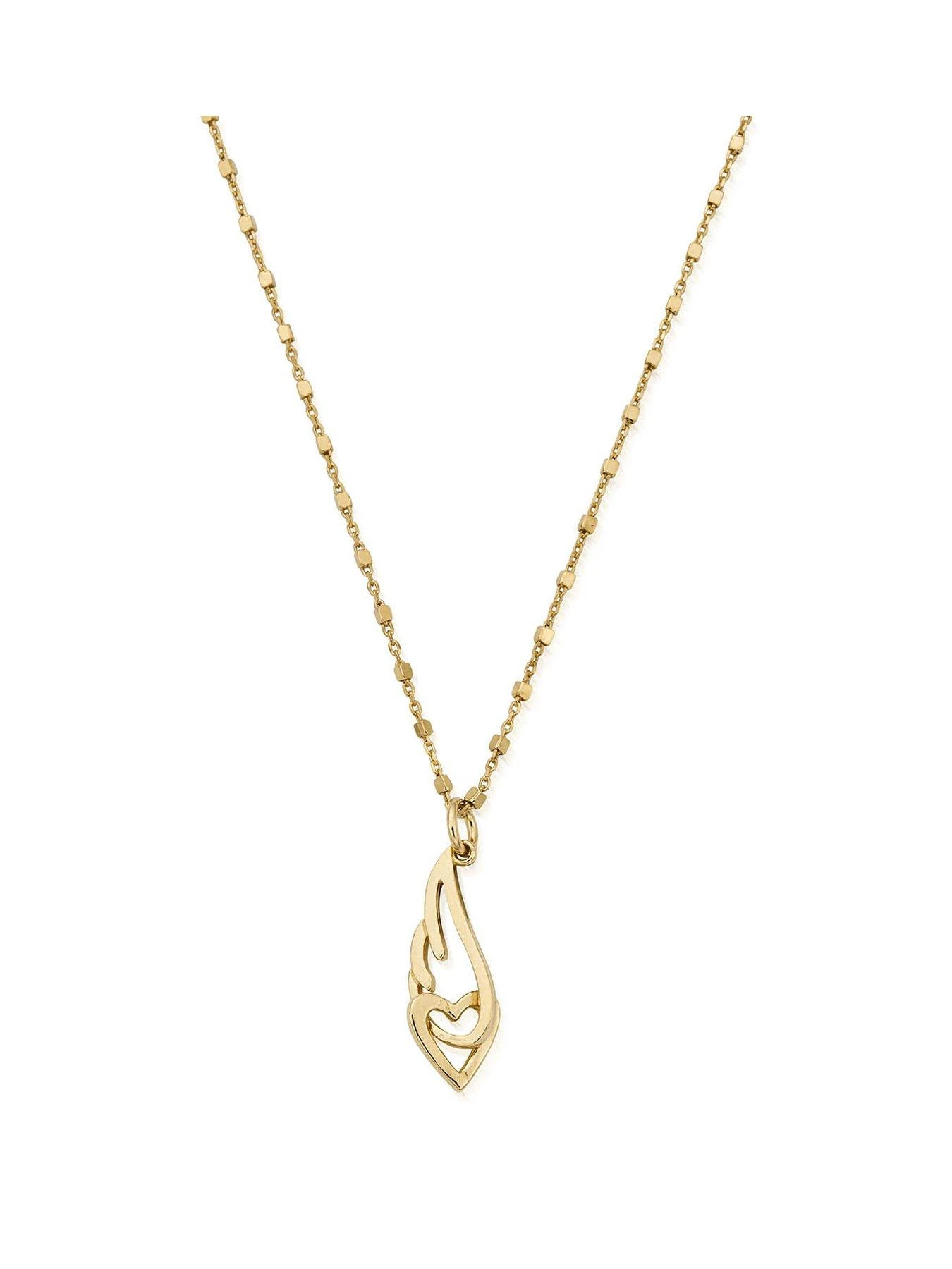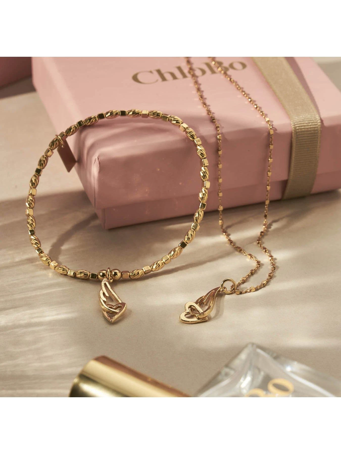 ChloBo GOLD DELICATE CUBE CHAIN INTERLOCKING HEART AND ANGEL WING NECKLACE