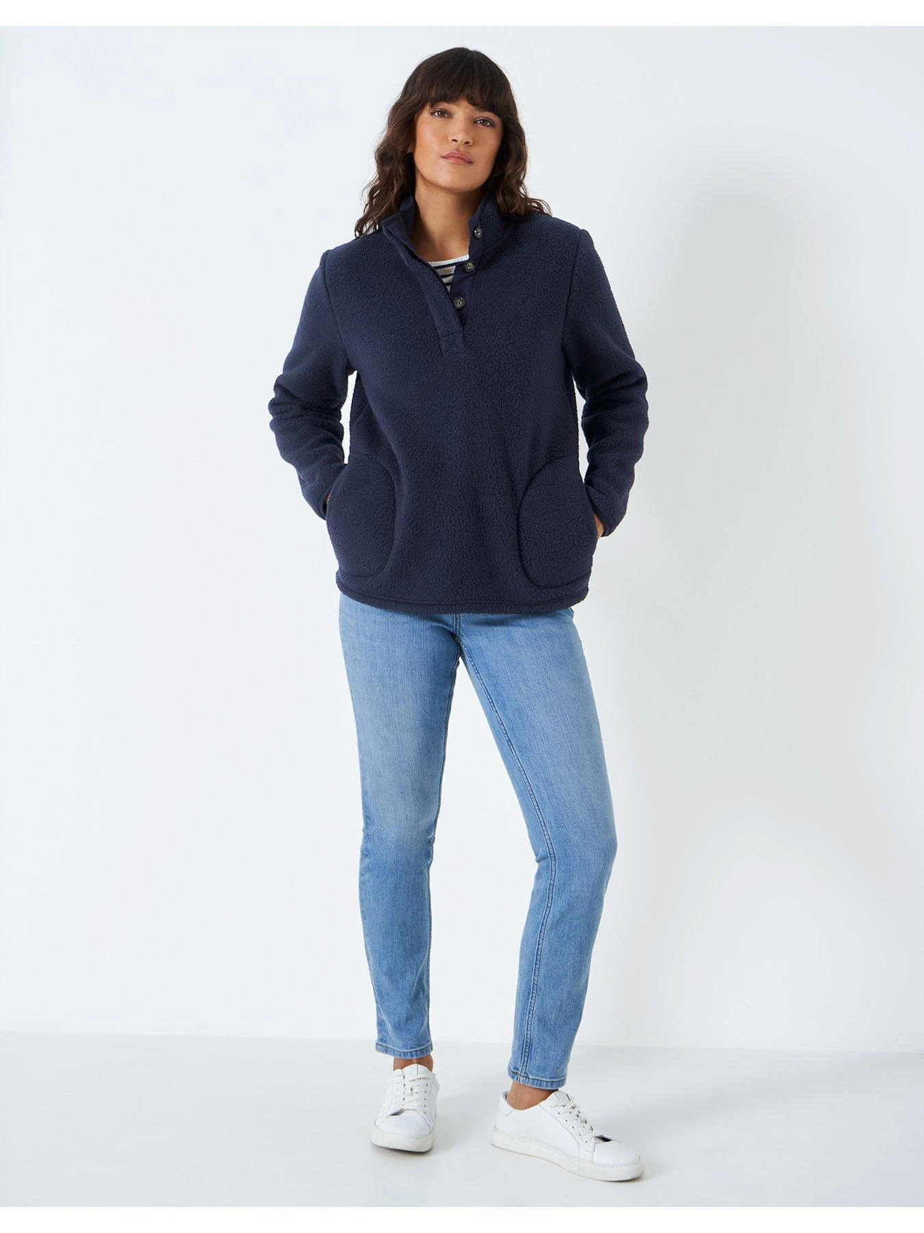 Crew Clothing Button Neck Fleece Sweat – Dark Blue