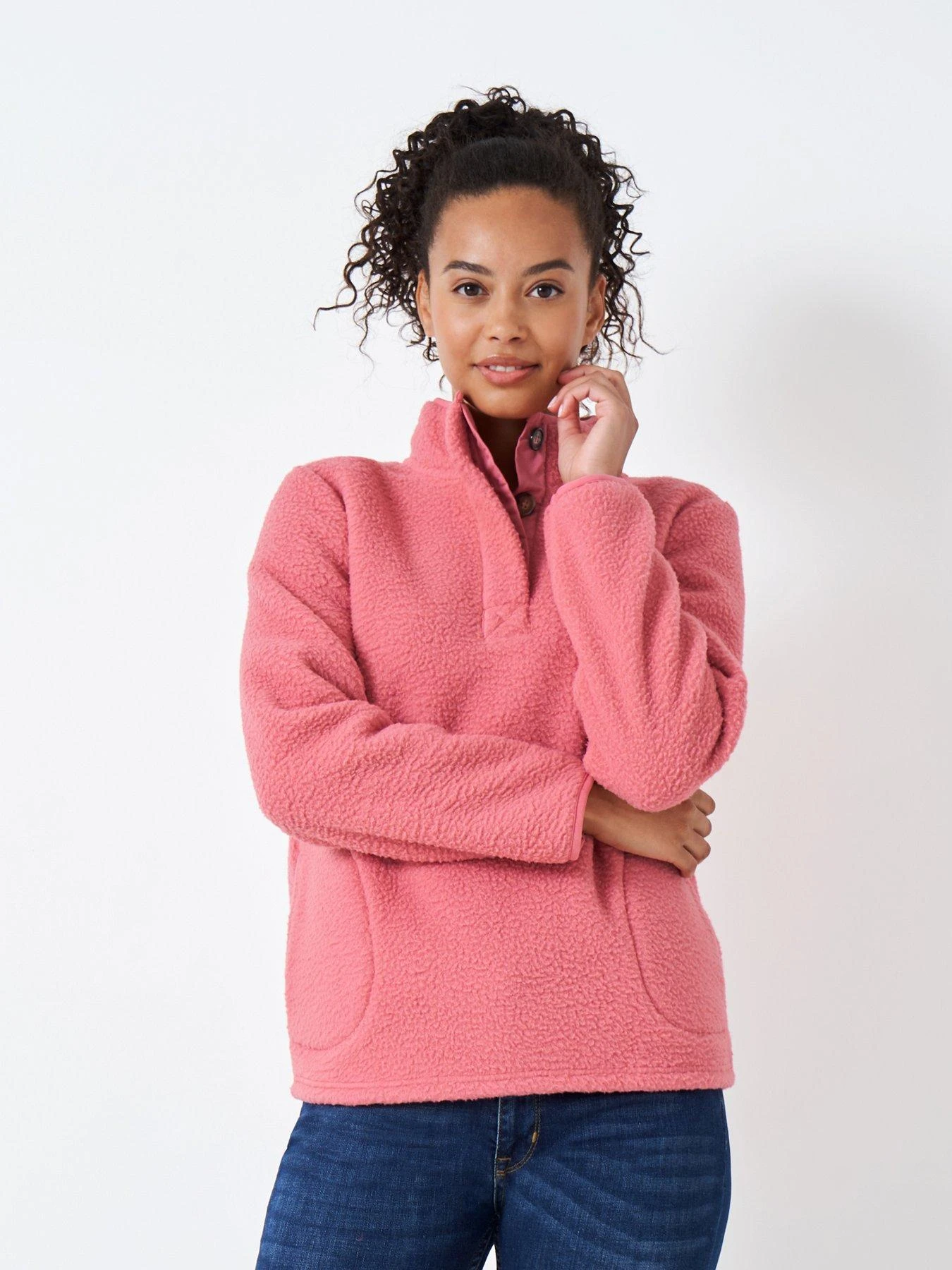 Crew Clothing Button Neck Fleece Sweat – Pink