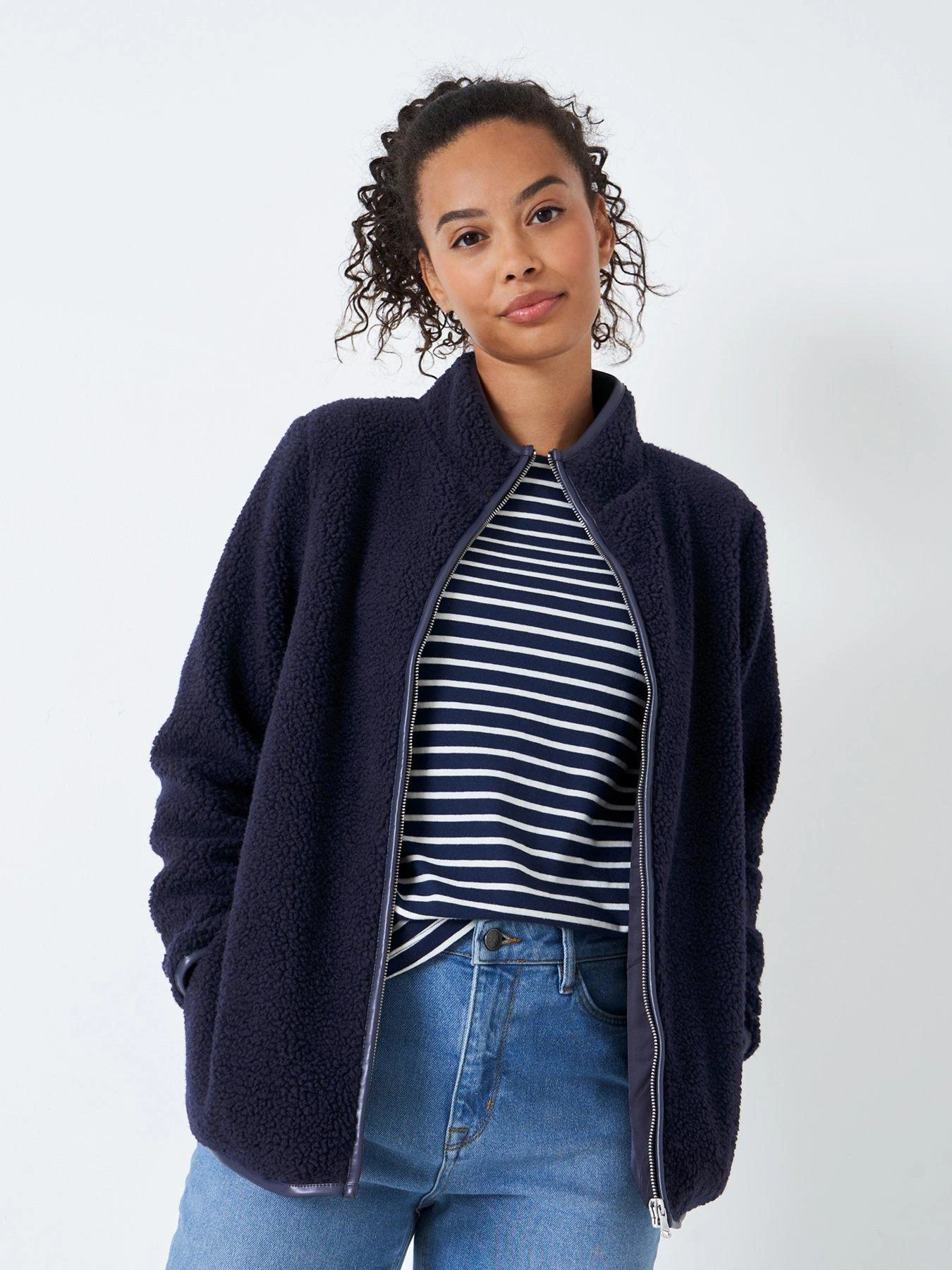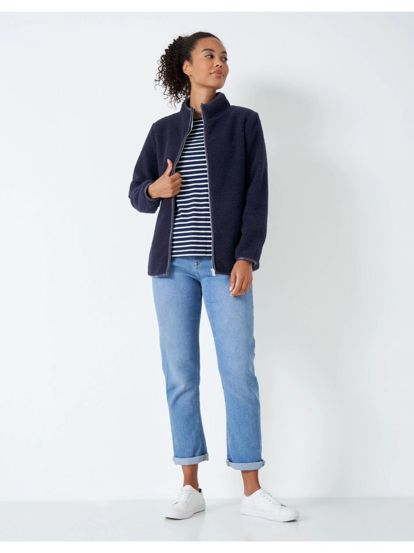 Crew Clothing Zip Through Fleece Sherpa – Navy
