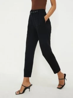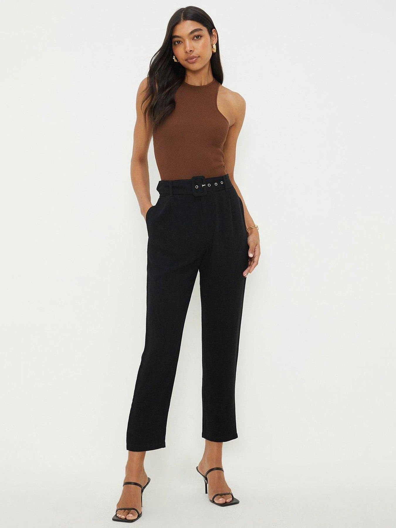 Dorothy Perkins Linen Blend Belted Trousers – Black