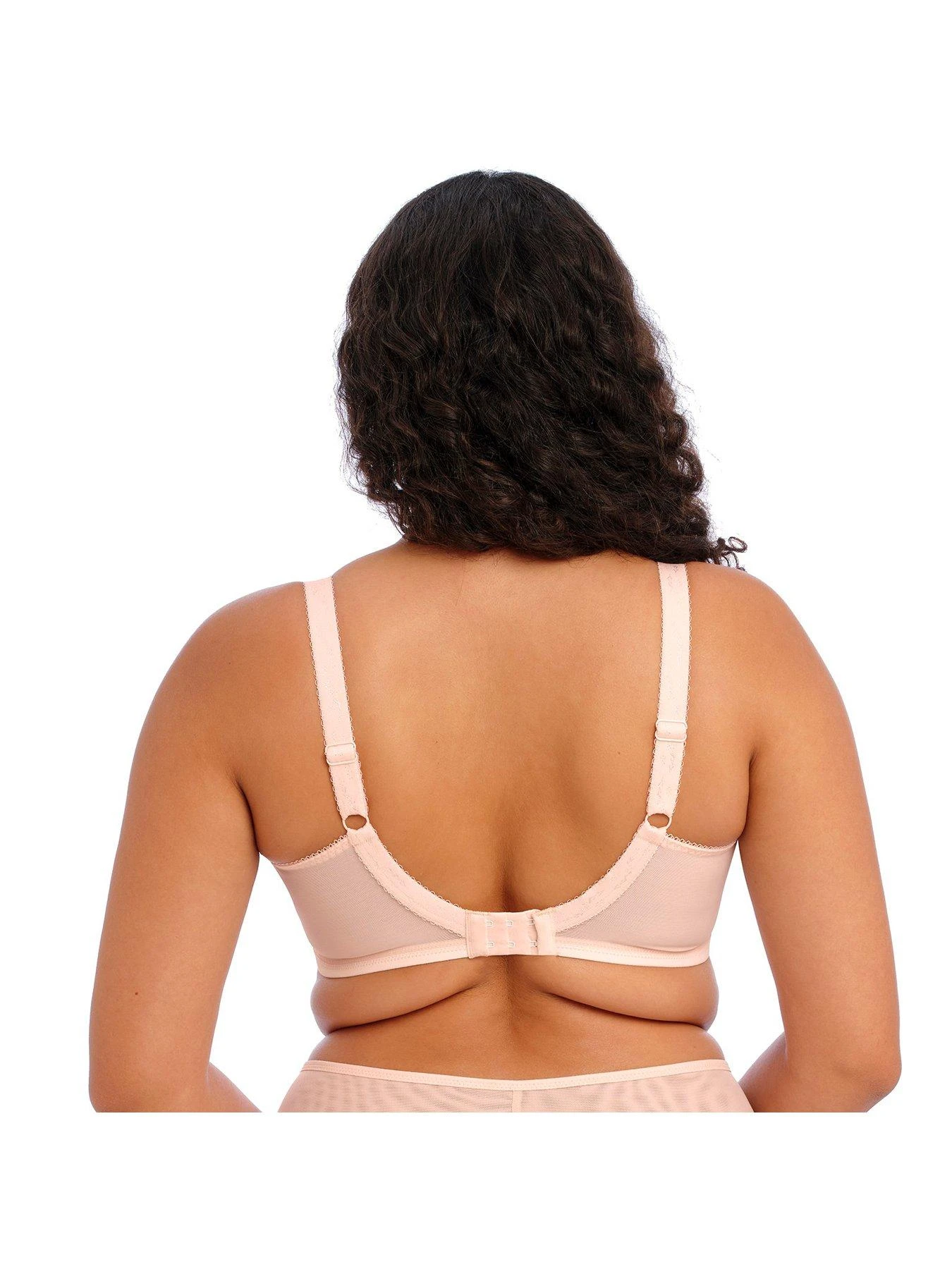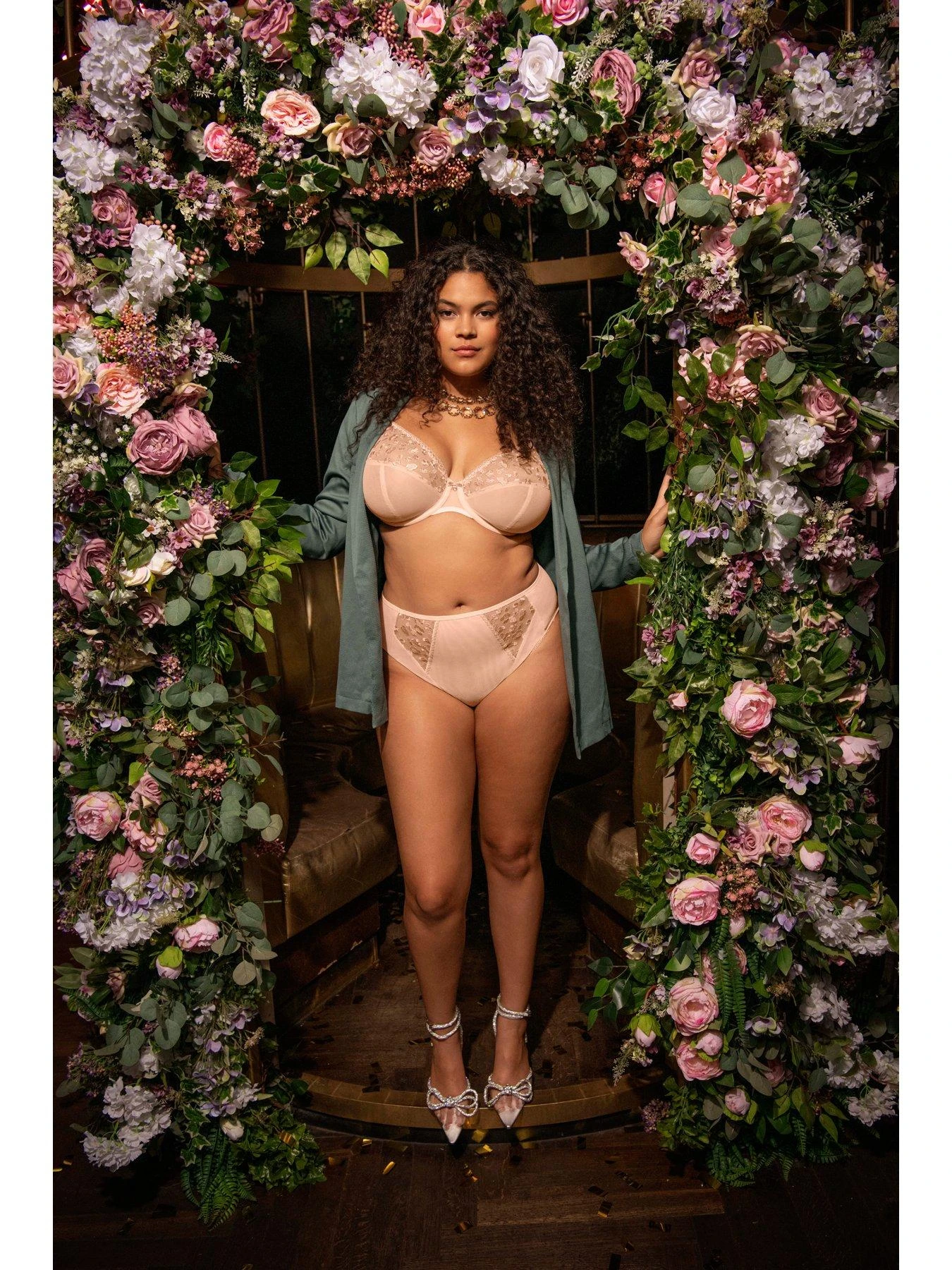Based on Matilda frame, Namrah Plunge Bra offers a bandless styling with no fabric under the cup, preventing roll-up. Top cup embroidery features a leopard spot design. Elasticated neck edge for ease of fit. Soft foldover elastic overlay on the bottom edge of underband and centre gore for all-day comfort. Rose gold metal apex rings and bow with metal ring detail at centre front.