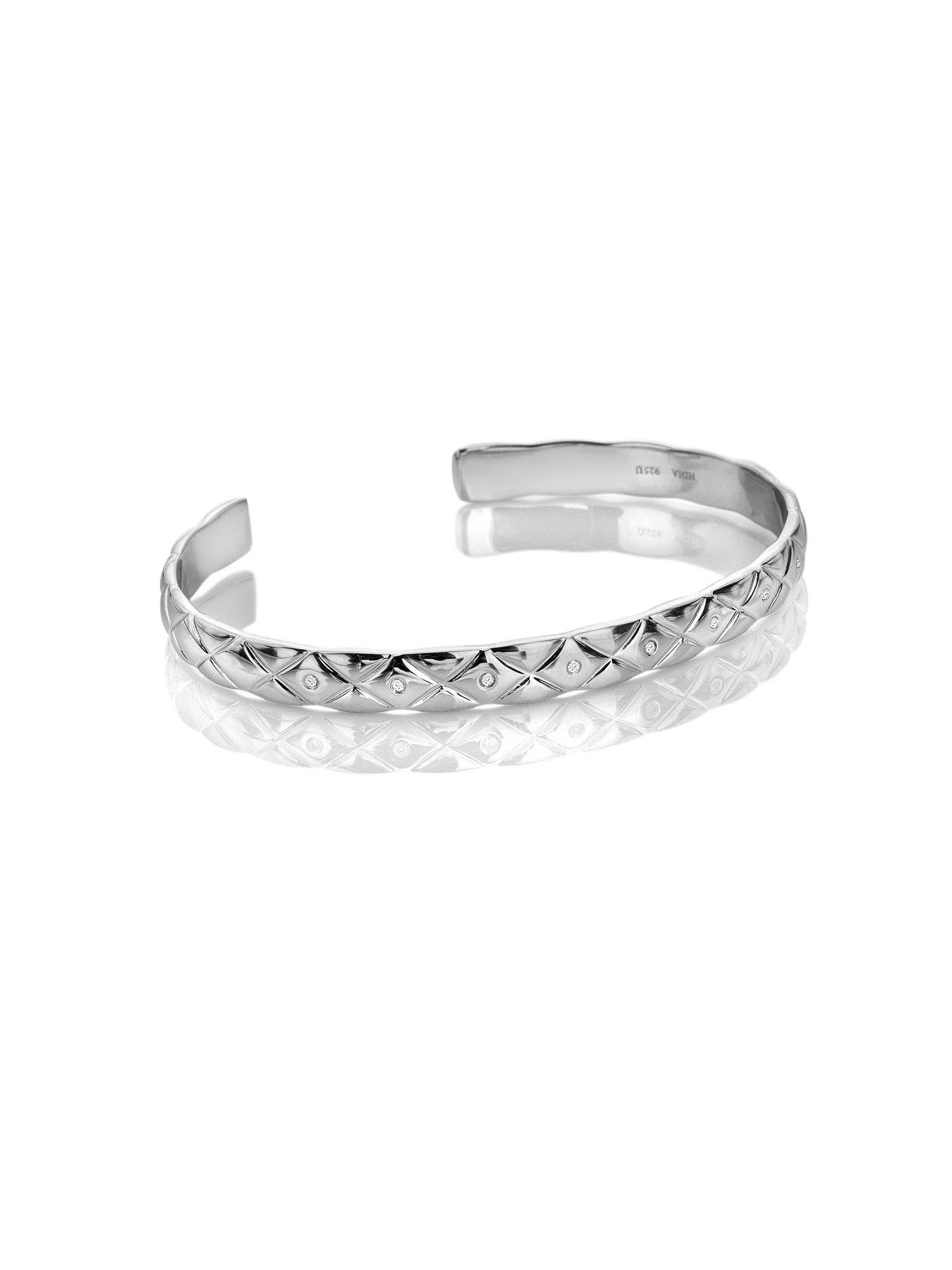 Creating a soft texture with silky quilting, designed to be worn on it’s own or stacked high, this bangle is sure to be your new everyday favourite. This bangle measures 65mm wide