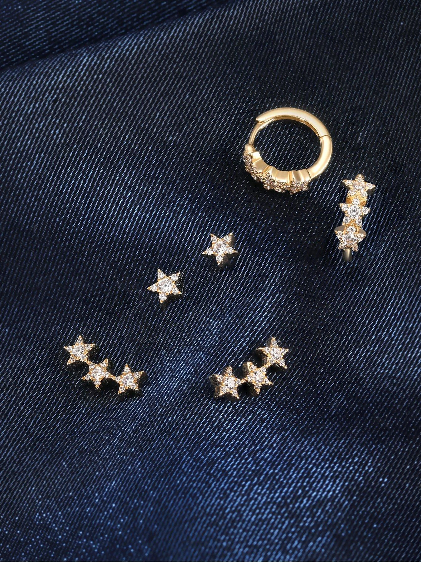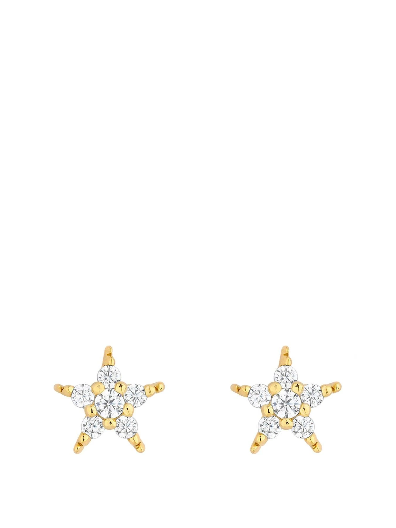 Inicio 14K Gold Plated Recycled Cubic Zirconia Star Stud Earrings Gift Pouch