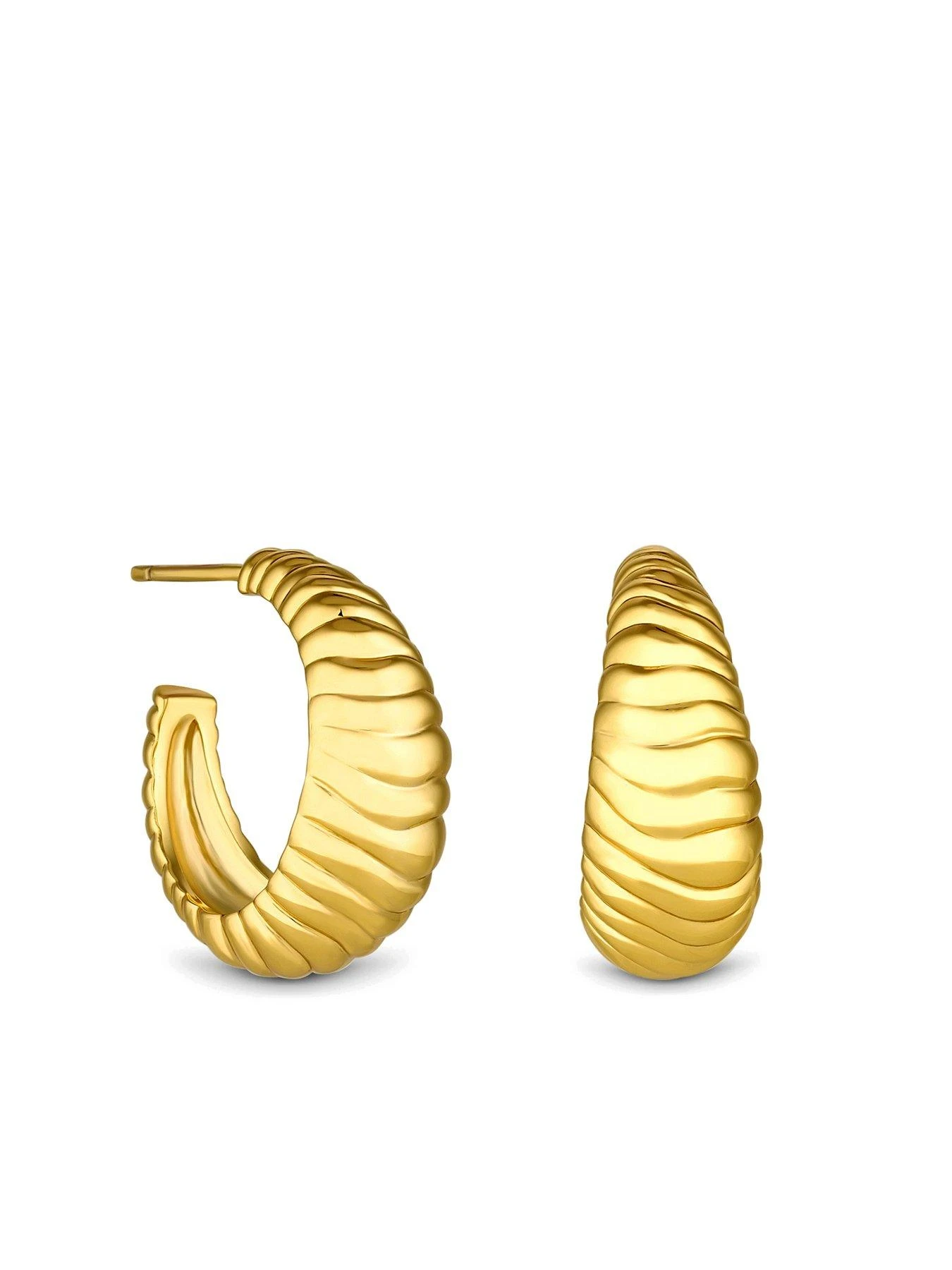 Inicio 14K Gold Plated Recycled Textured Polished Hoop Earrings Gift Pouch