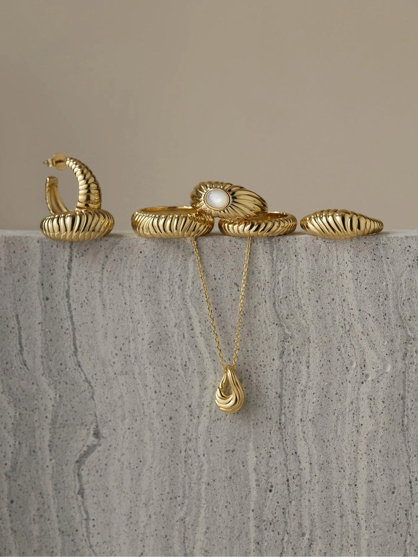 These luxe textured hoops are in a classic domed shape. Wear them solo or with your everyday hoops and studs for a curated look. Inicio jewellery will arrive to you in a reusable velvet pouch.