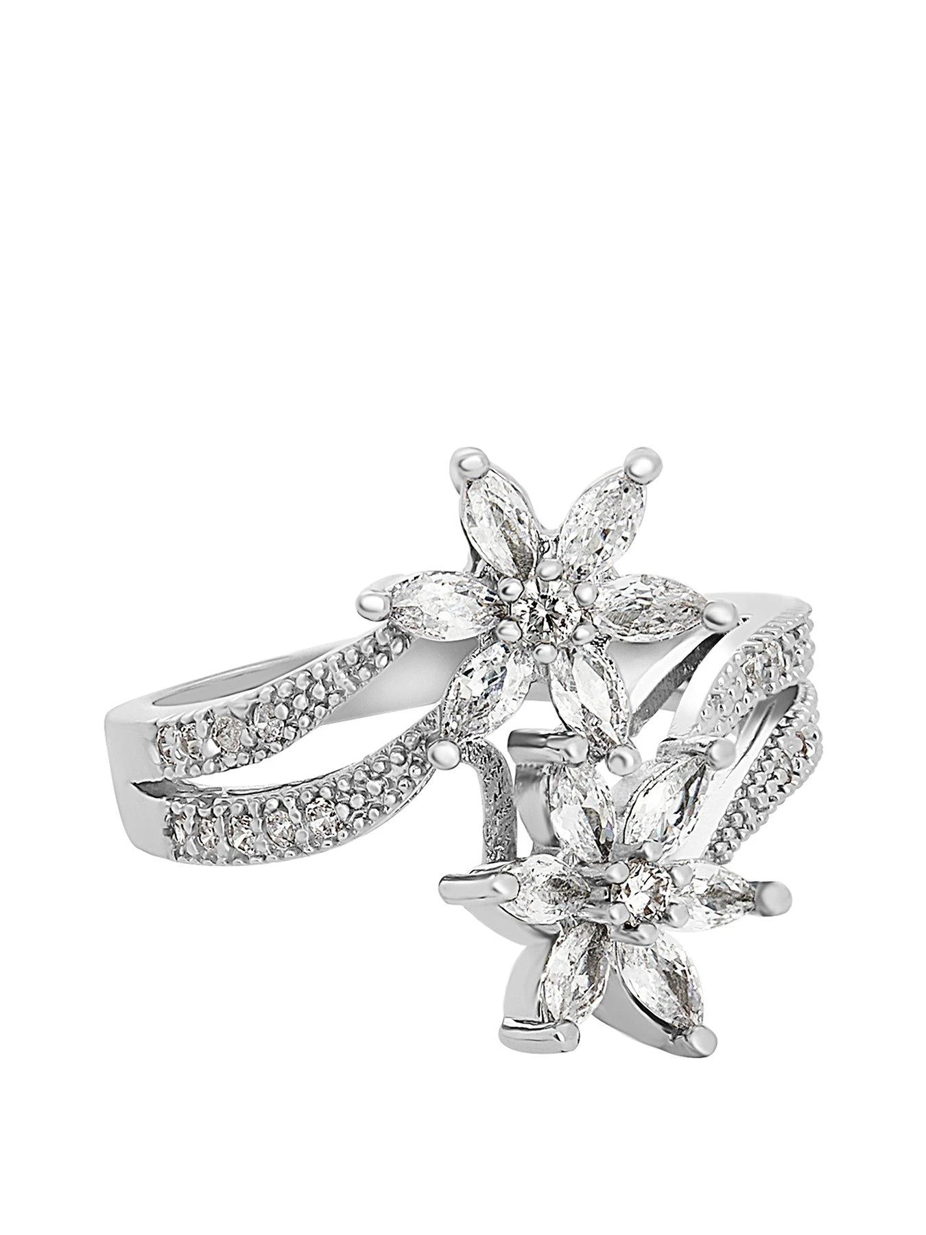 Jon Richard RHODIUM PLATE DOUBLE FLOWER CUBIC ZIRCONIA RING 16MM