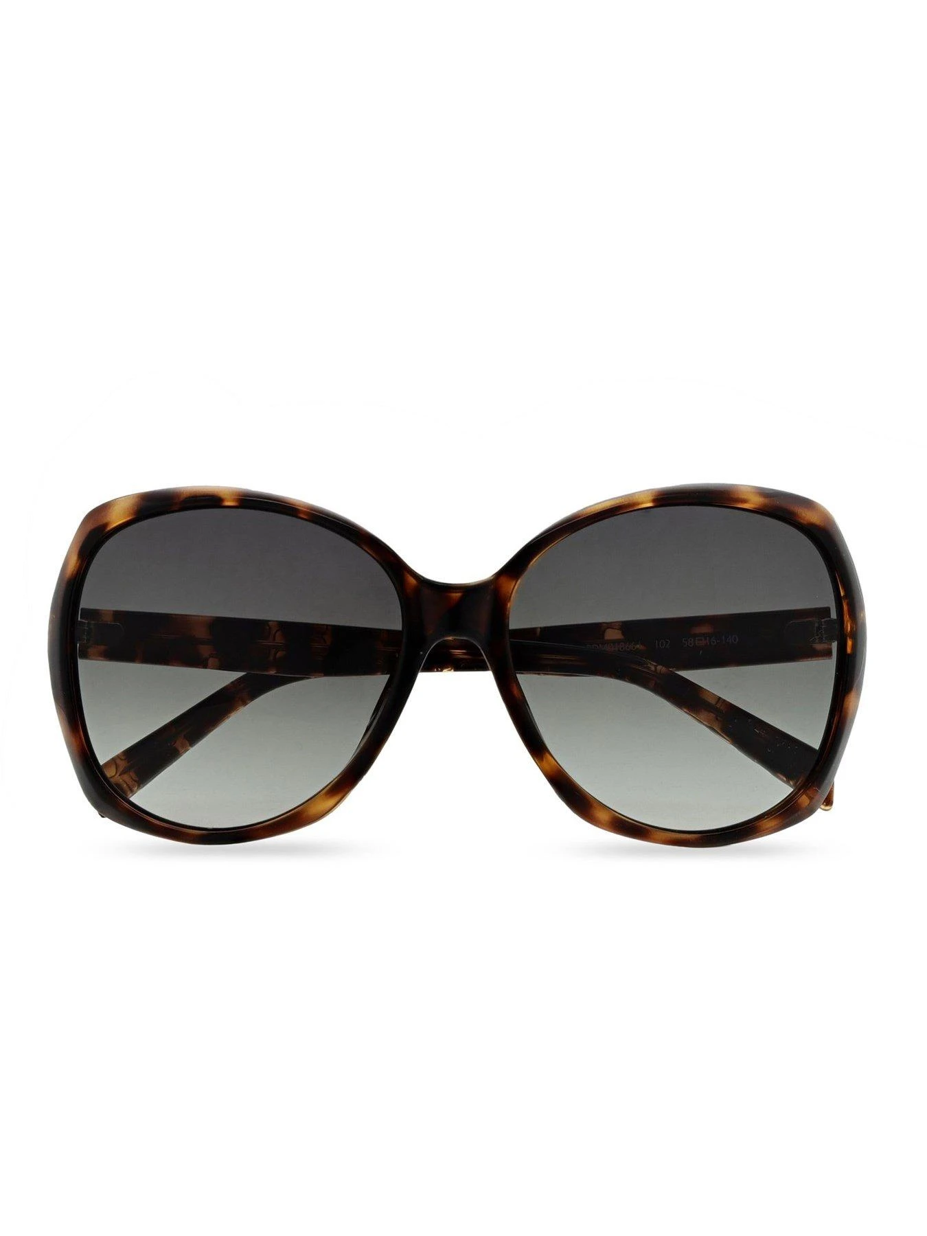 These oversized fashion sunglasses from Karen Millen will never go out of style. Shown here in classic dark tortoiseshell with retro inspired green graduated lenses, the branded temples feature a textured, self coloured animal print.