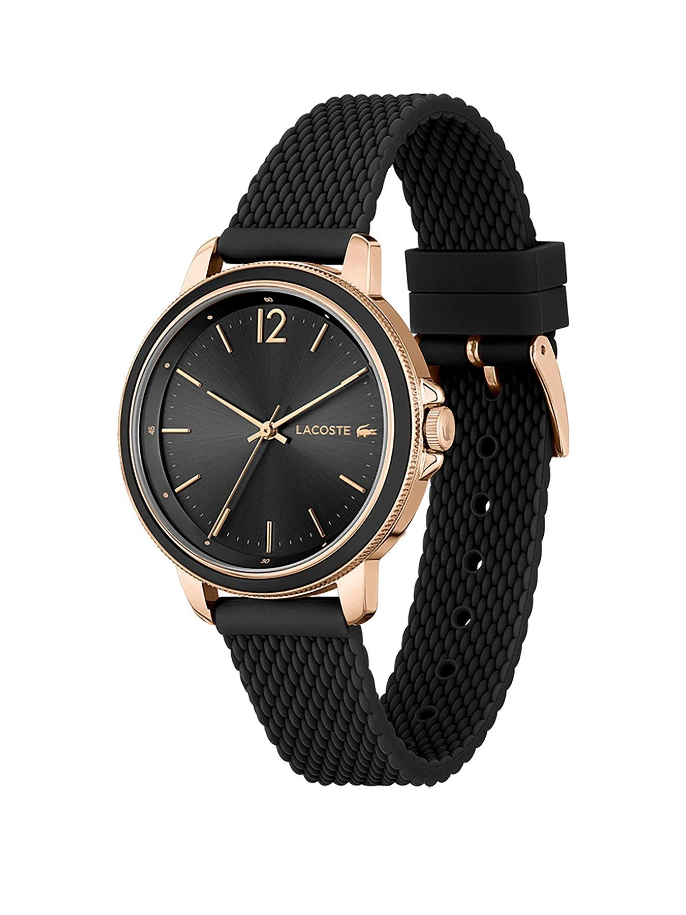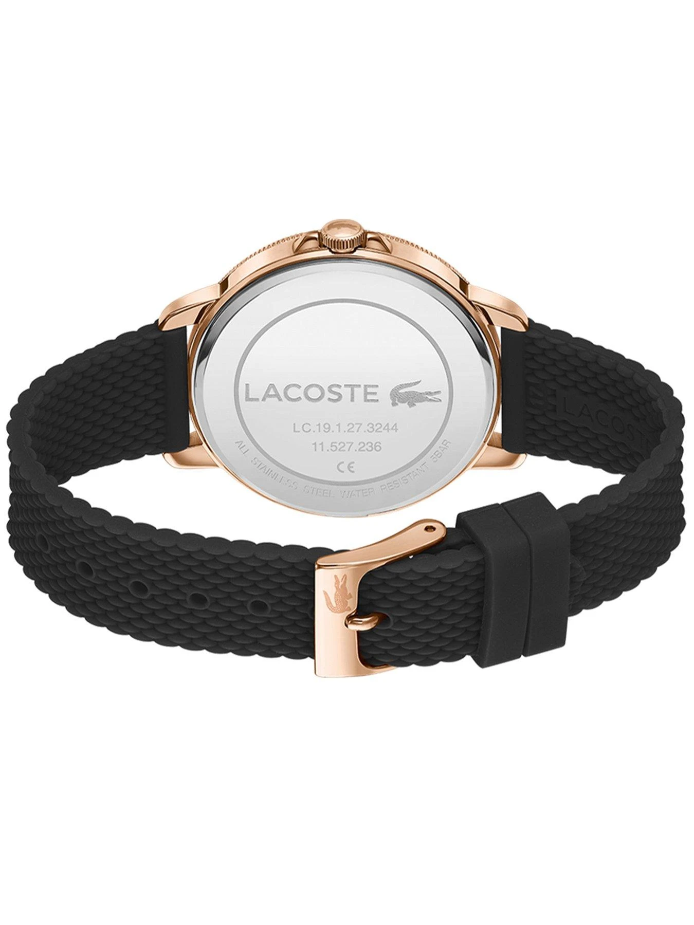 Drawing on the tennis heritage of the Lacoste brand in a new and modern way, the elegant Slice timepiece combines sports-inspired features with inimitable French chic. The three-hand design features a stainless steel case with crown protection, a coin-edg