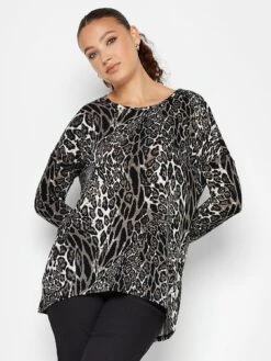 Animal print,Soft handle,Long sleeve,Crew neckline,Made from a soft knitted fabric,95% polyester, 5% elastane,Shortest length from (approx): 70cm/28″, Longest length from (approx): 83cm/33″, Machine washable,