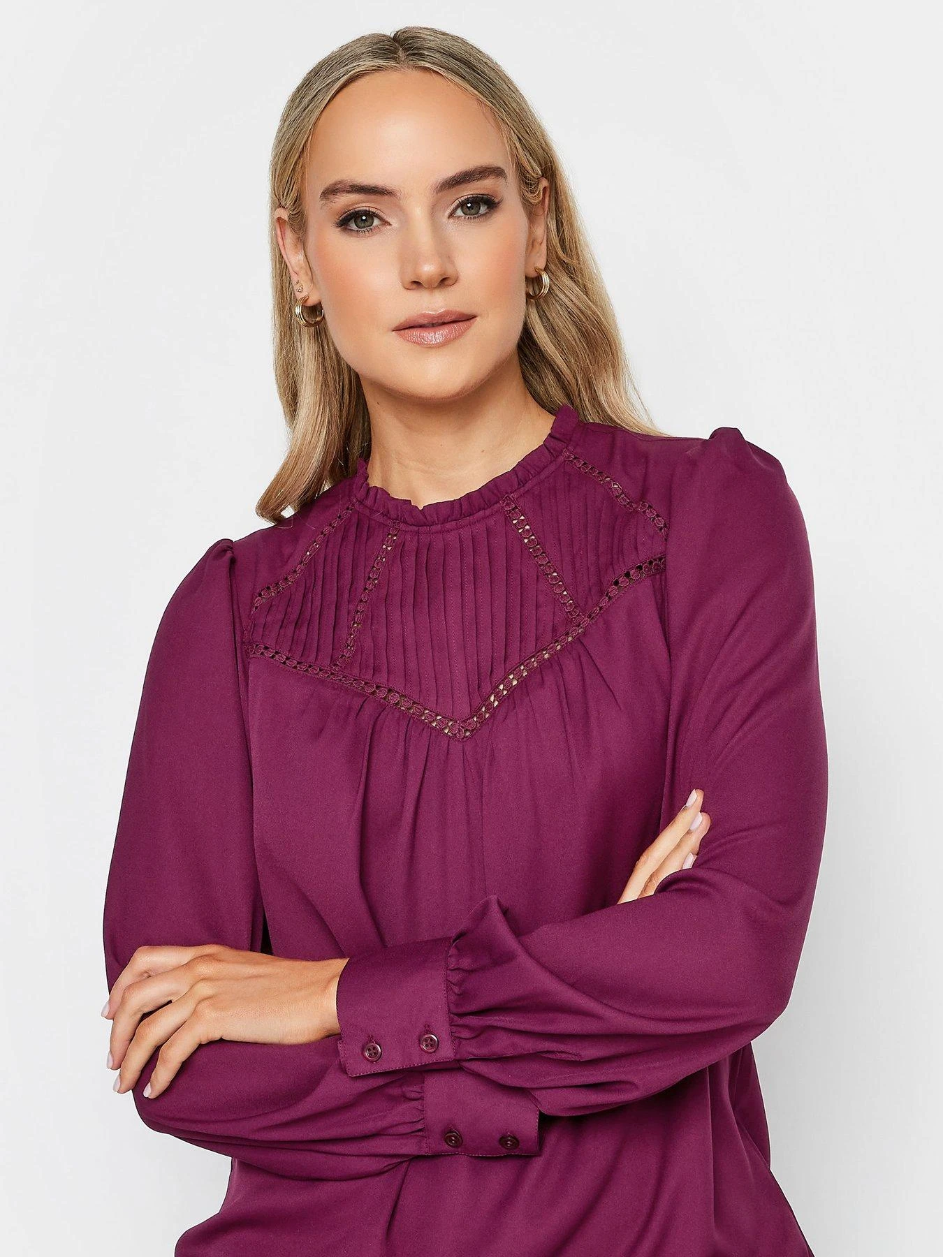 Long Tall Sally Berry Lace Insert Pleat Blouse