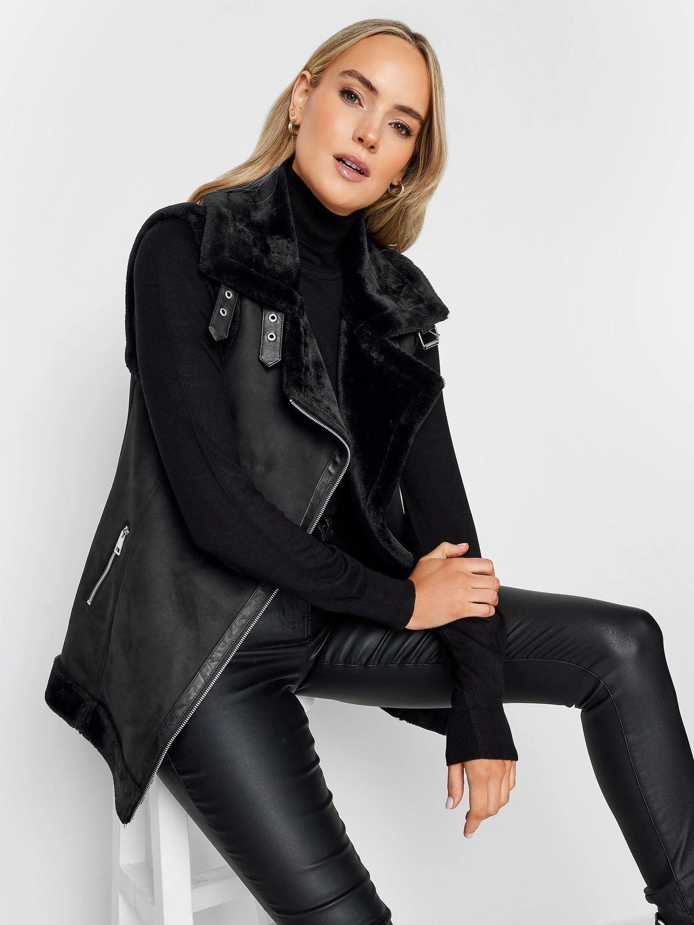 Sleeveless gilet style,Aviator design,Faux fur trim,Zip fastening,Buckle detailing,Two side pockets,Made from a comfortable woven fabric,100% polyester,