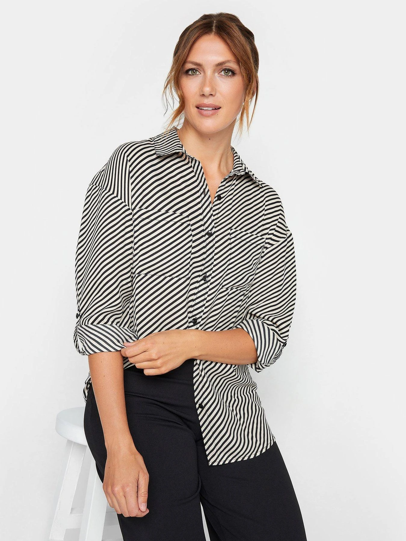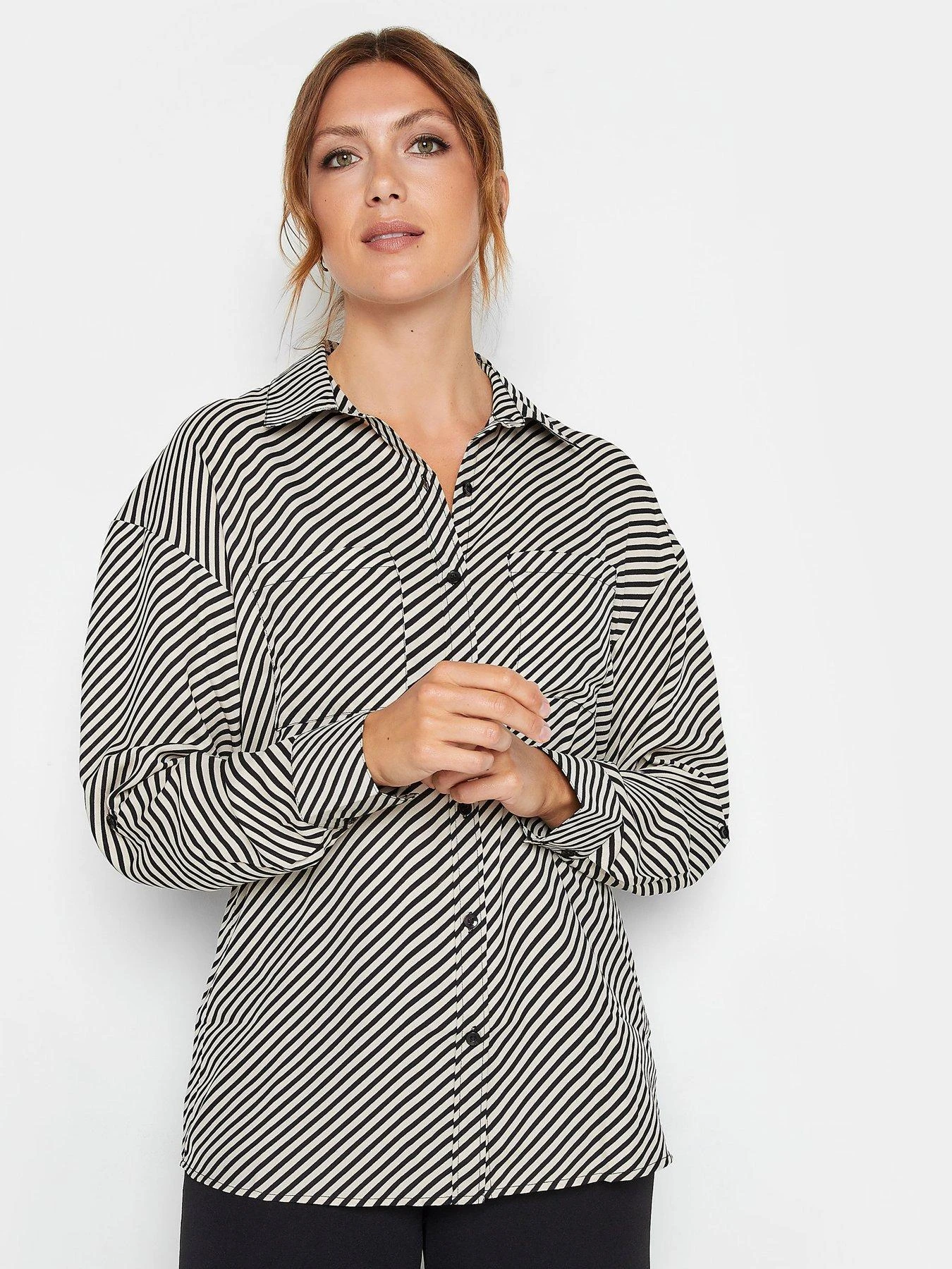 Long Tall Sally Black/cream Diagonal Stripe Oversized Boyfriend Shirt