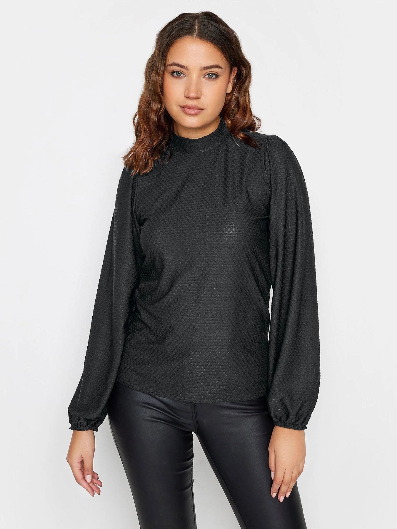 Long Tall Sally Black High Neck Textured Top