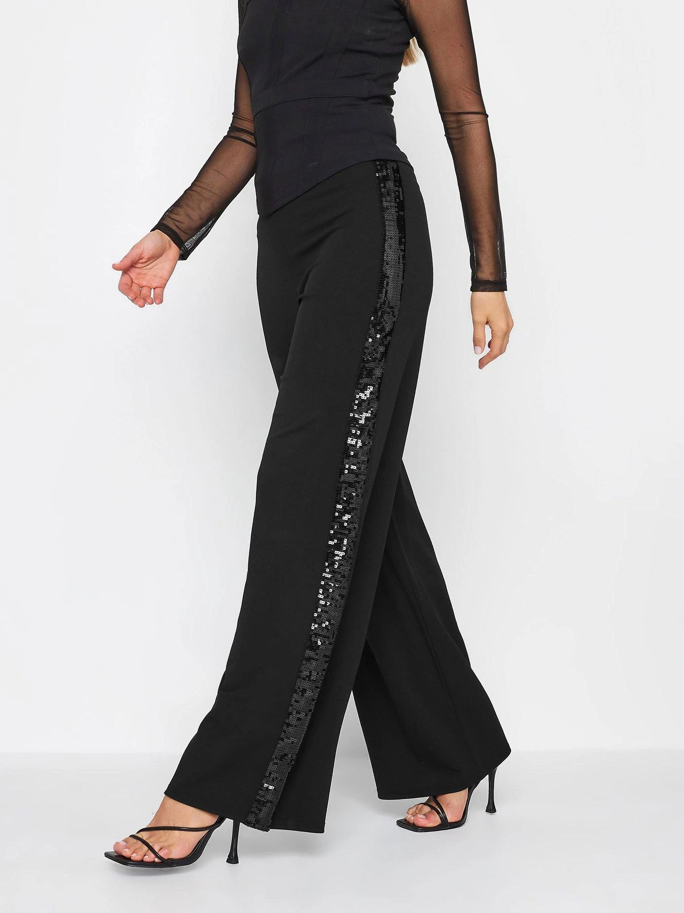 Long Tall Sally Black Sequin Stripe Wide Leg Trouser 34″