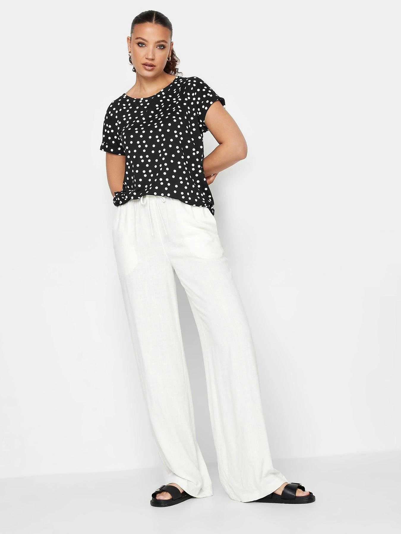 Refresh your workwear with this polka dot top. Made from a comfortable jersey fabric this top features a scoop neckline, short sleeves and a polka dot design. Style with trousers and heels for a look that’ll take you from nine to wine.