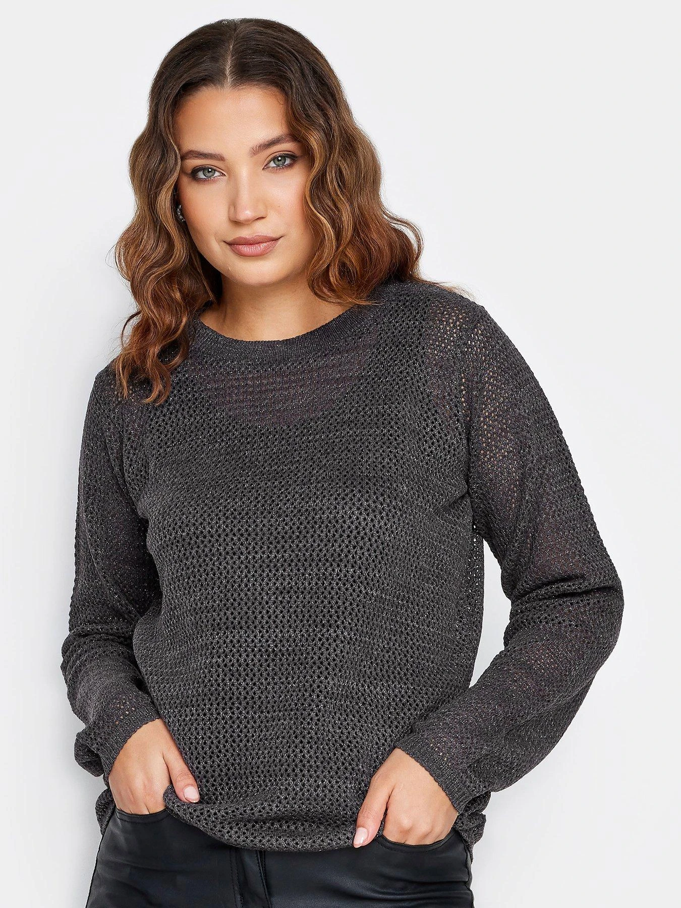 Long Tall Sally Charcoal Lurex Pointelle Jumper