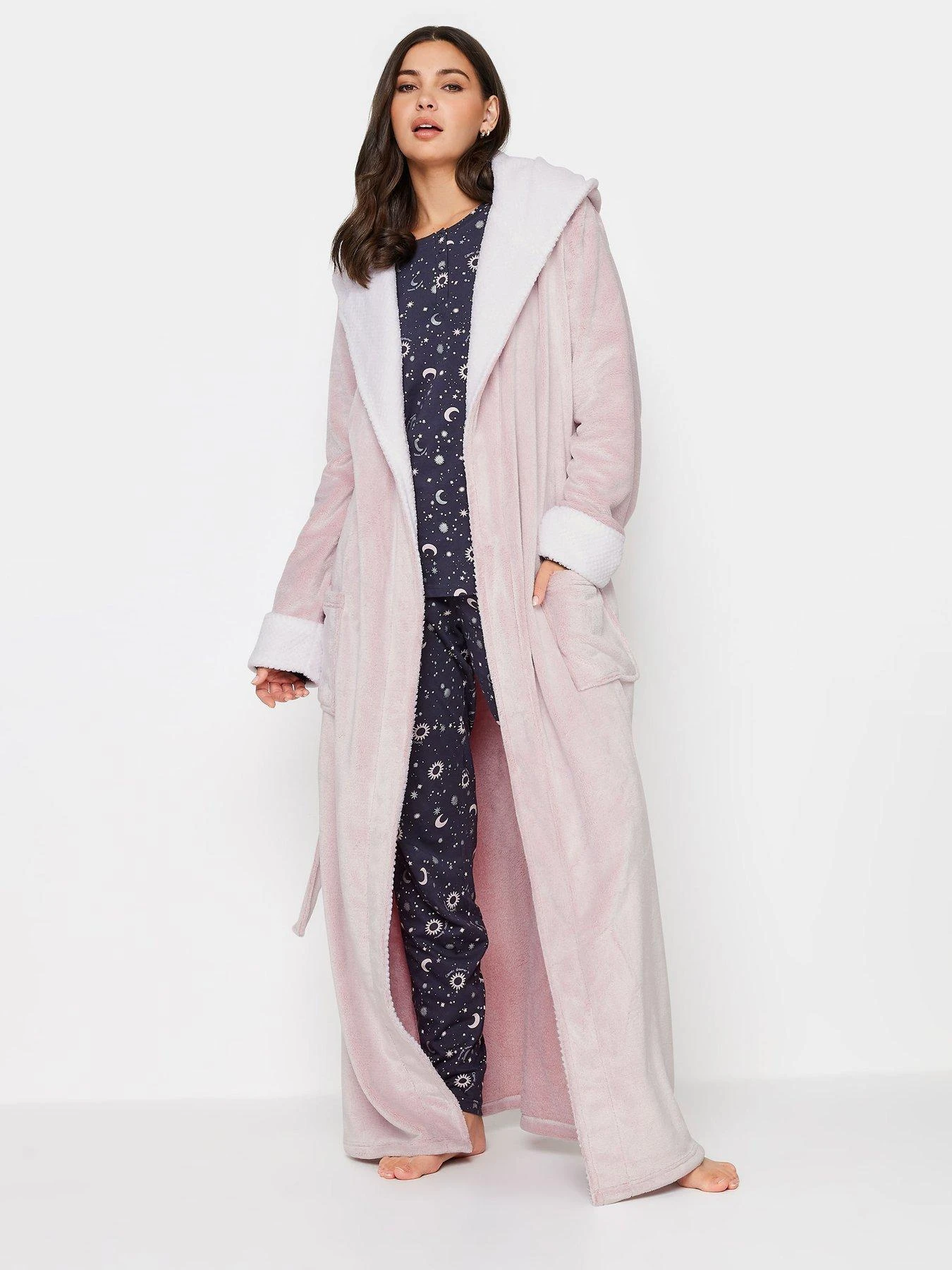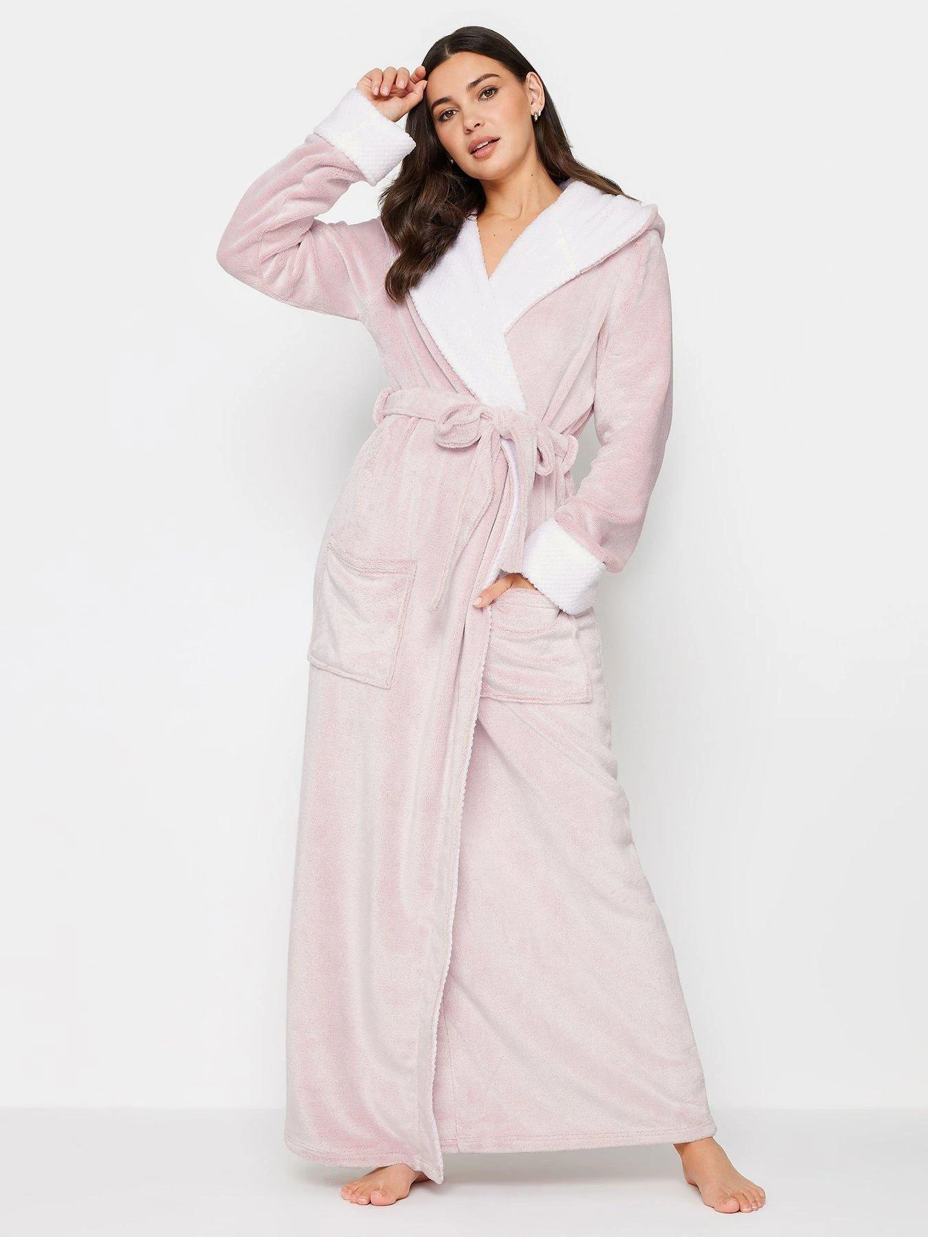 Long Tall Sally Contrast Waffle Trim Hooded Maxi Robe