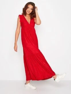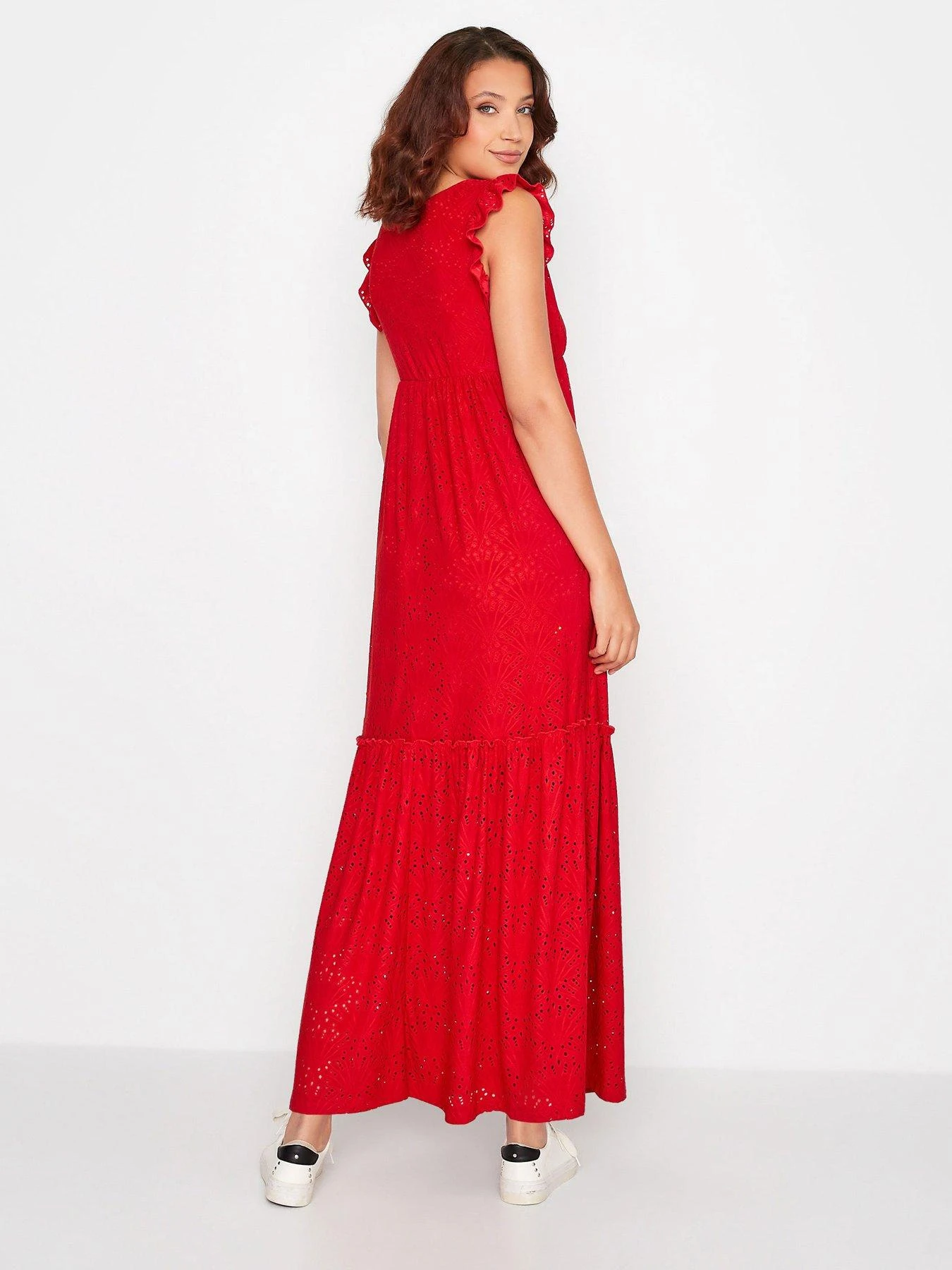Long Tall Sally Deep V Broderie Tiered Maxi Dress Red