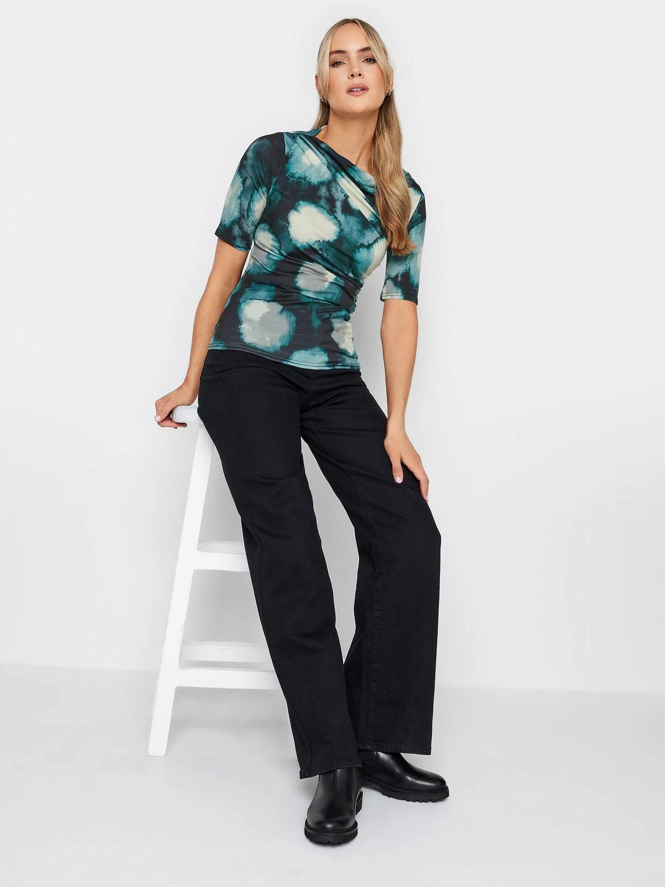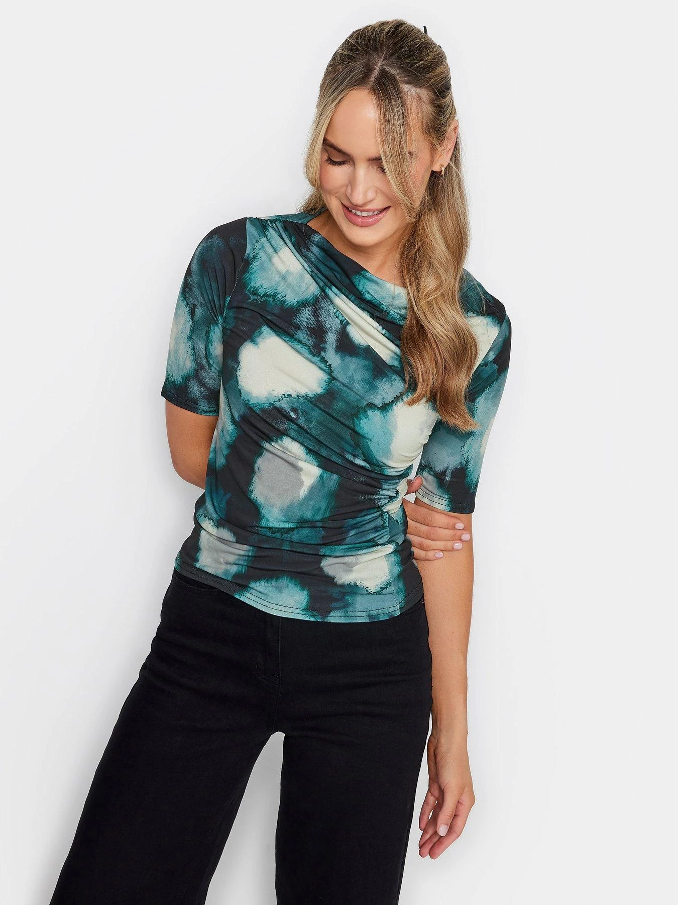 Long Tall Sally Draped Printed Ity Top – Blue