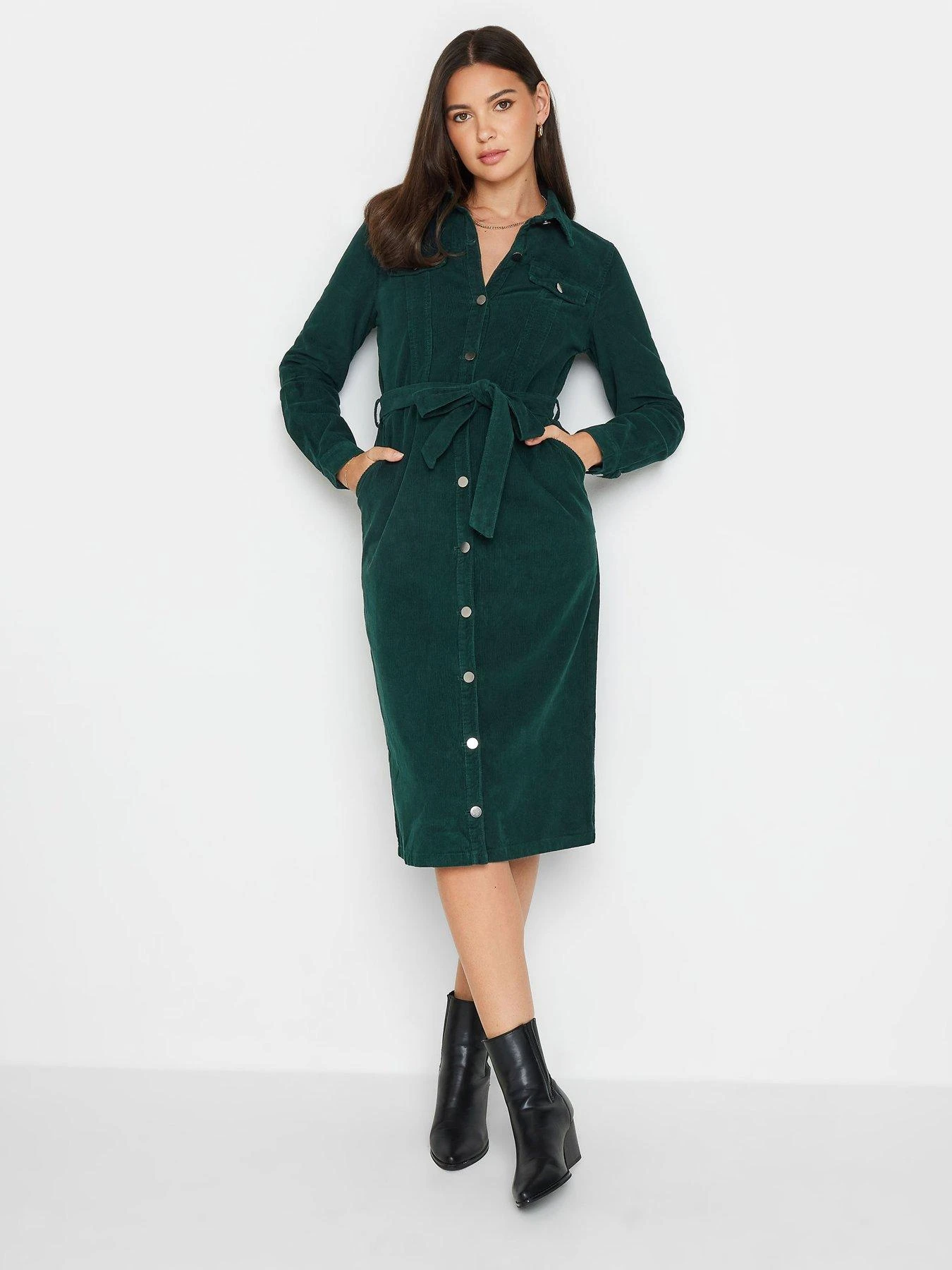 Long Tall Sally Green Cord Fitted Midi Dress