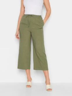 Long Tall Sally  Khaki Wide Leg Linen Crop Trouser