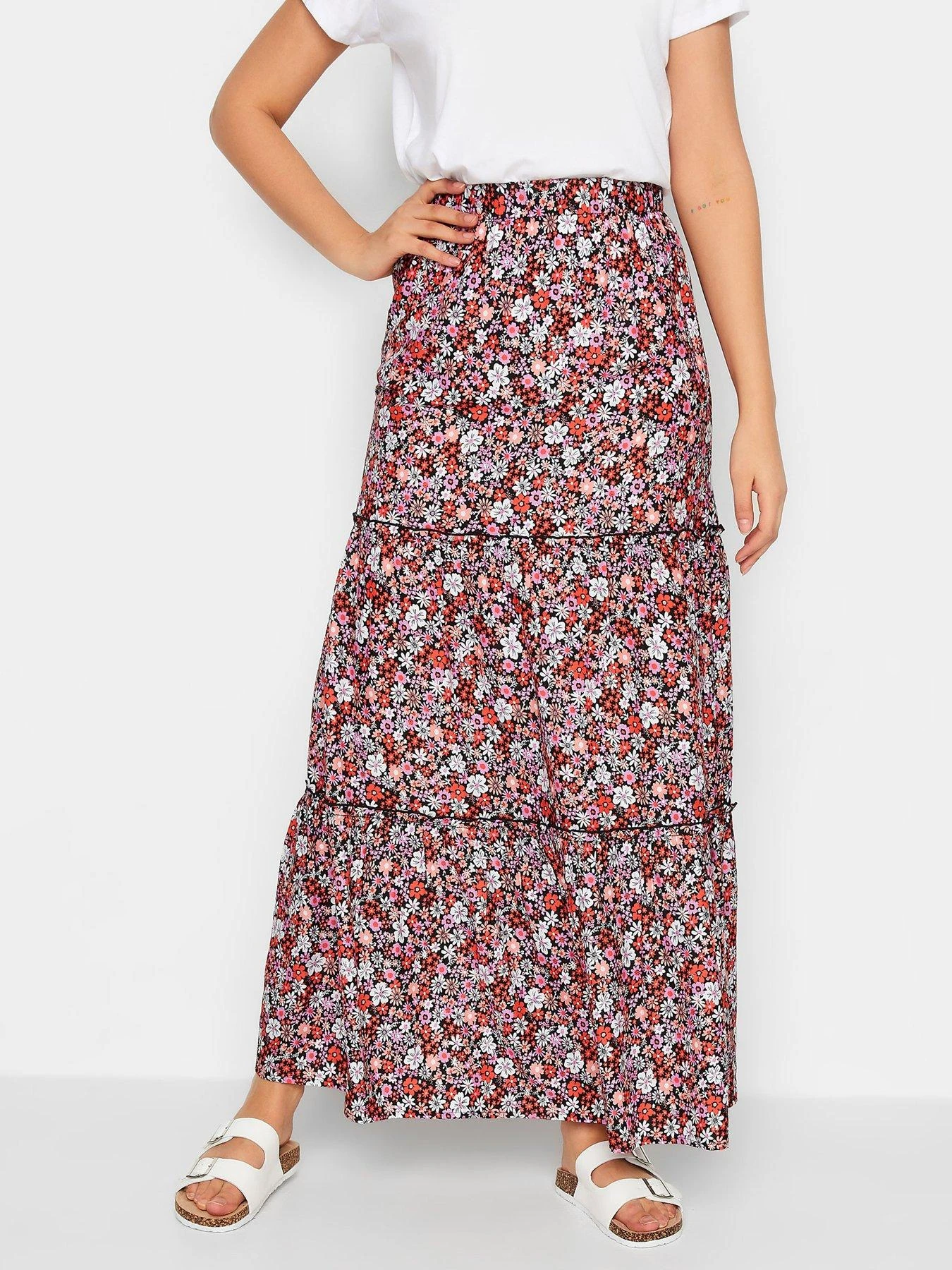 Long Tall Sally Long Long Tall Sally Sally Pink Ditsy Tiered Maxi Skirt