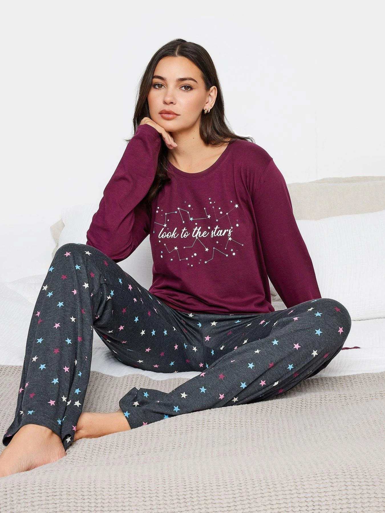 Long Tall Sally Long Tall Sally Look To The Stars Long Sleeve Wide Leg Pj Set