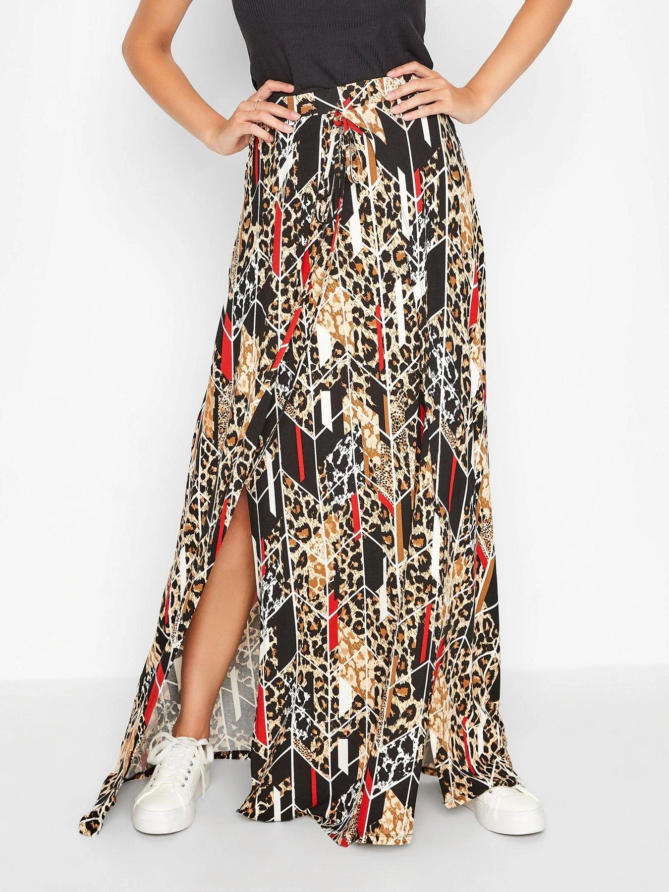 Add mixed prints to elevate your wardrobe with this LTS maxi skirt. Made from a comfortable jersey fabric, it features an elasticated waistband with two high side split hems and central waist tie, complete in an all-over animal geometric print. Pair with a vest top and trainers to enjoy the hot weather.