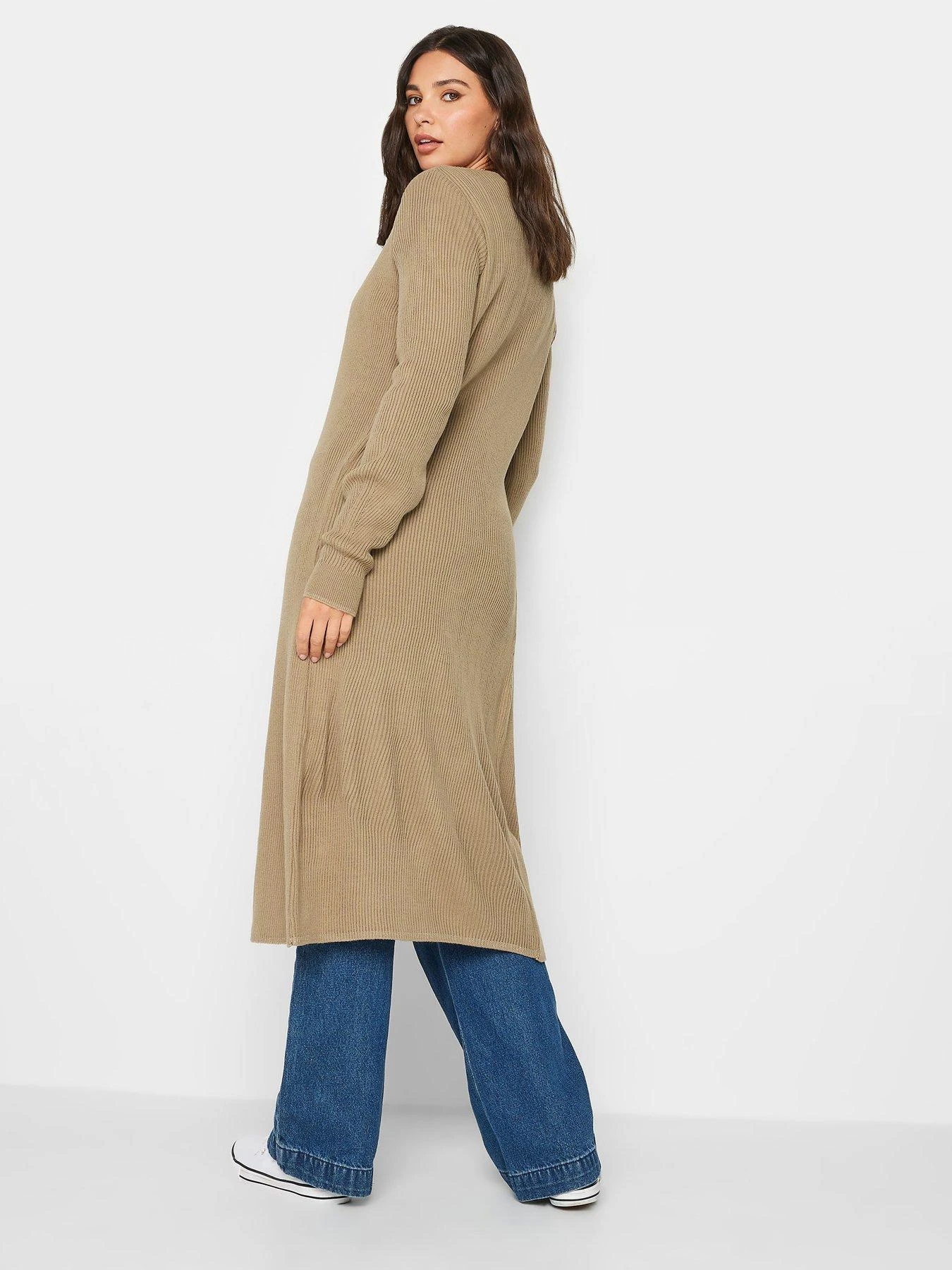 Long Tall Sally Natural Longline Rib Button Cardigan