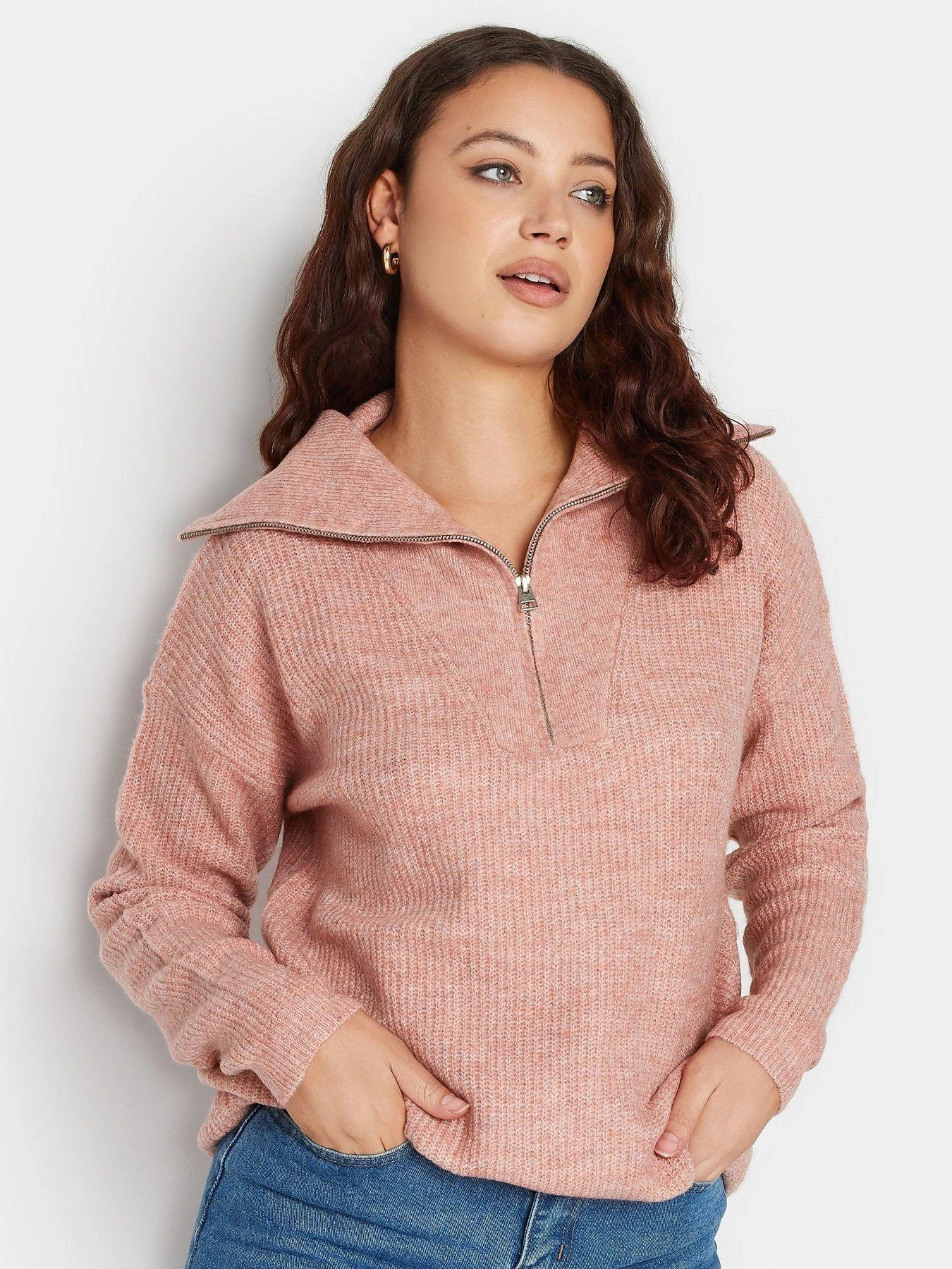 Long Tall Sally Pink Marl Zip Funnel Jumper