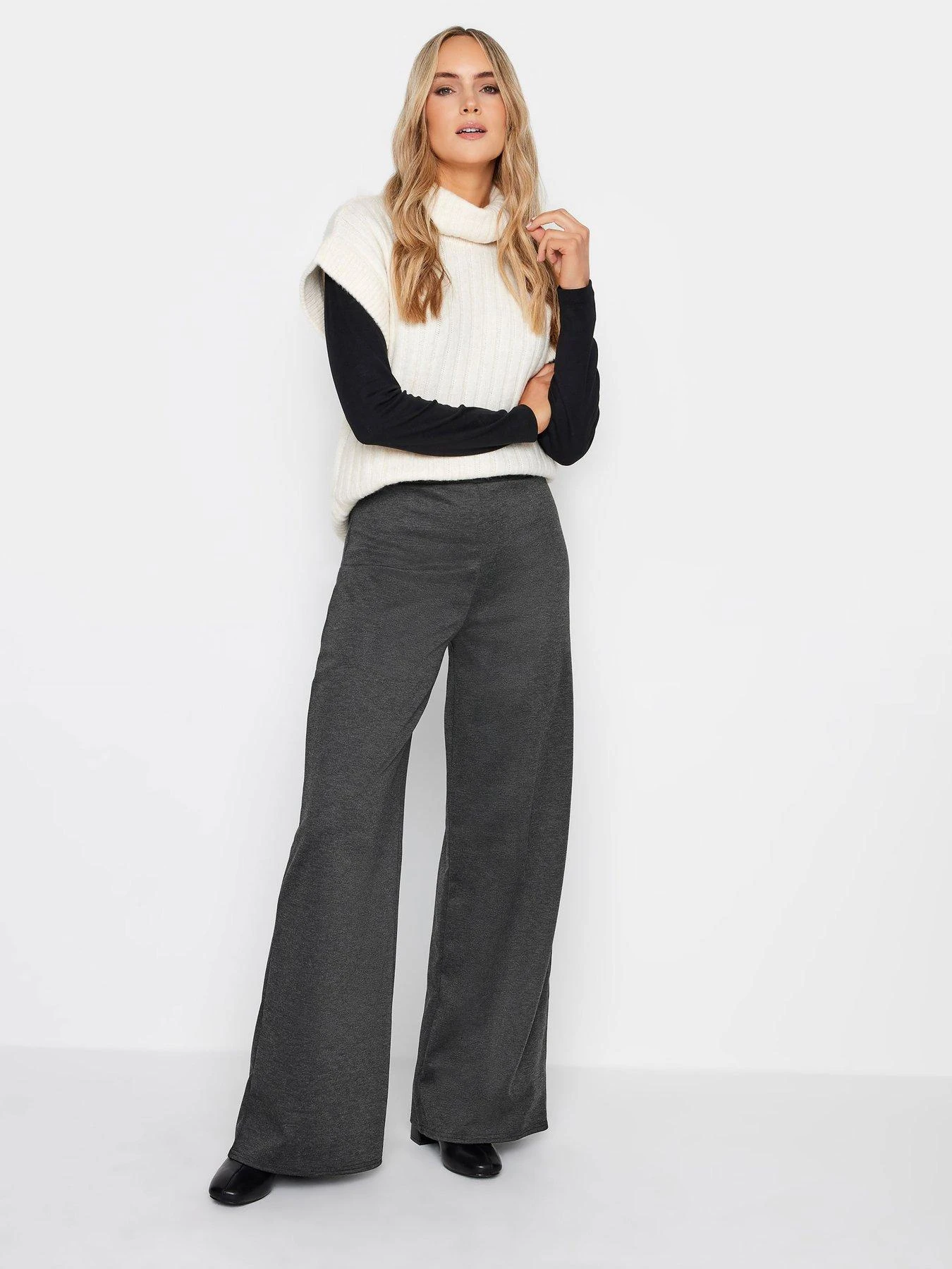 Long Tall Sally Ponte Wide Leg Trousers Charcoal 34″