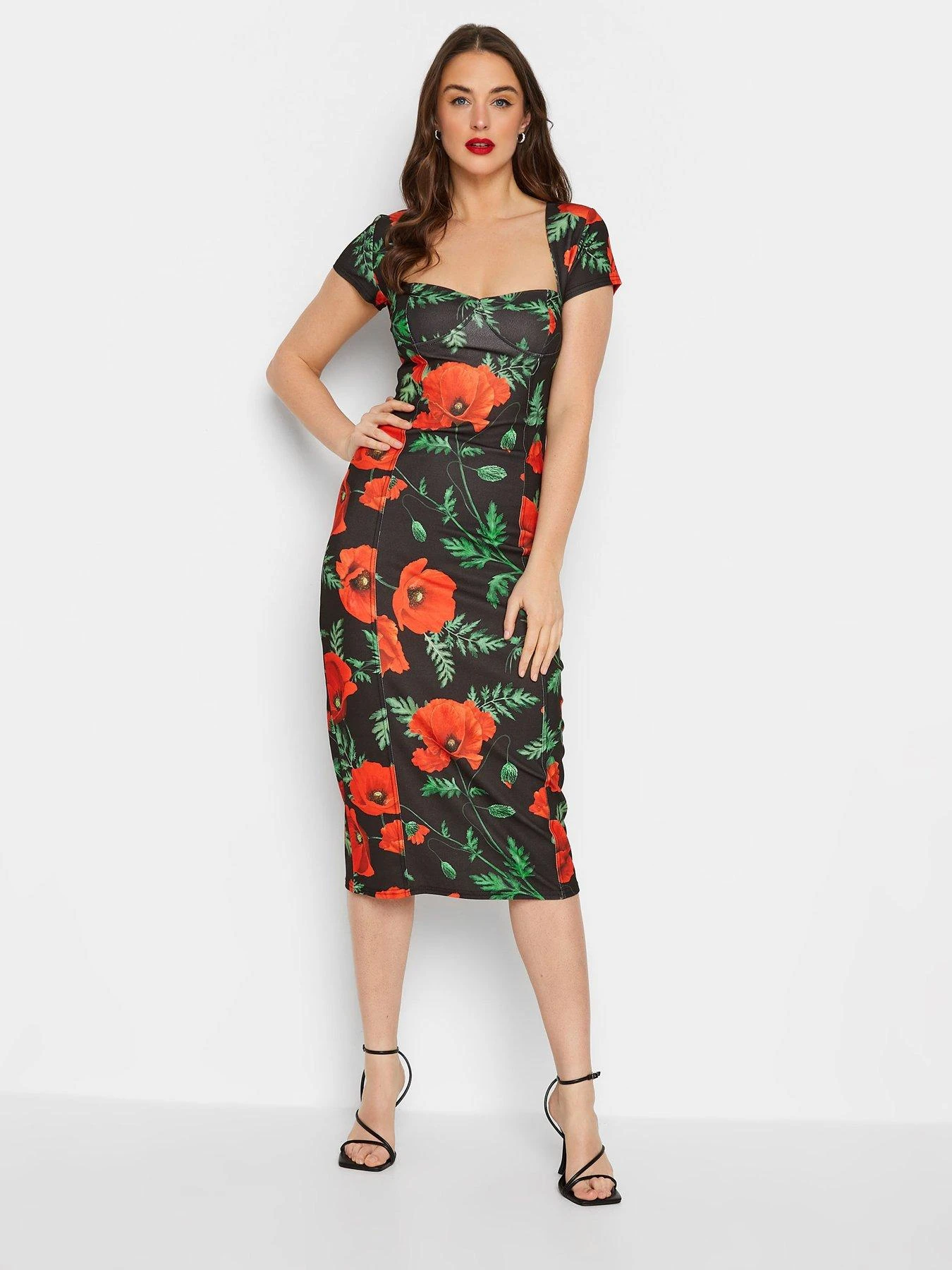 Get ready for an evening out in this new-in floral corset dress. Made from a stretch jersey fabric, it features short sleeves, with a sweetheart neckline in a bodycon fit, complete at a midi length. Style with heels and a clutch bag to finish the look.