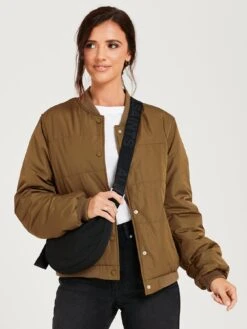 - Opt for effortless off-duty cool with this classic bomber jacket, a sleek and sporty style that’s perfect for days on-the-go