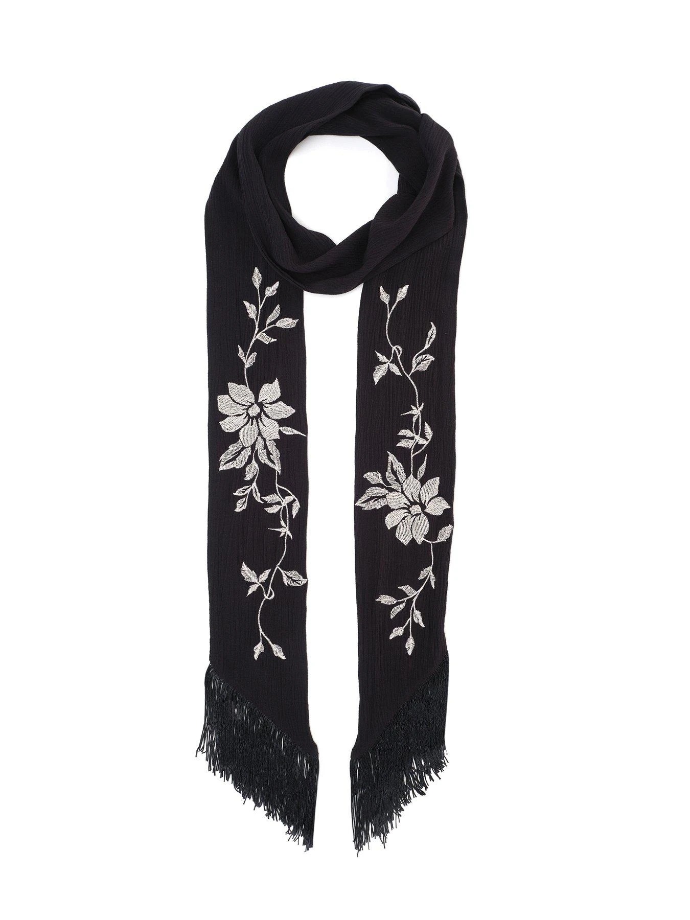 Embroidered with a delicate floral pattern, this black skinny scarf is the finishing touch to complete any look.