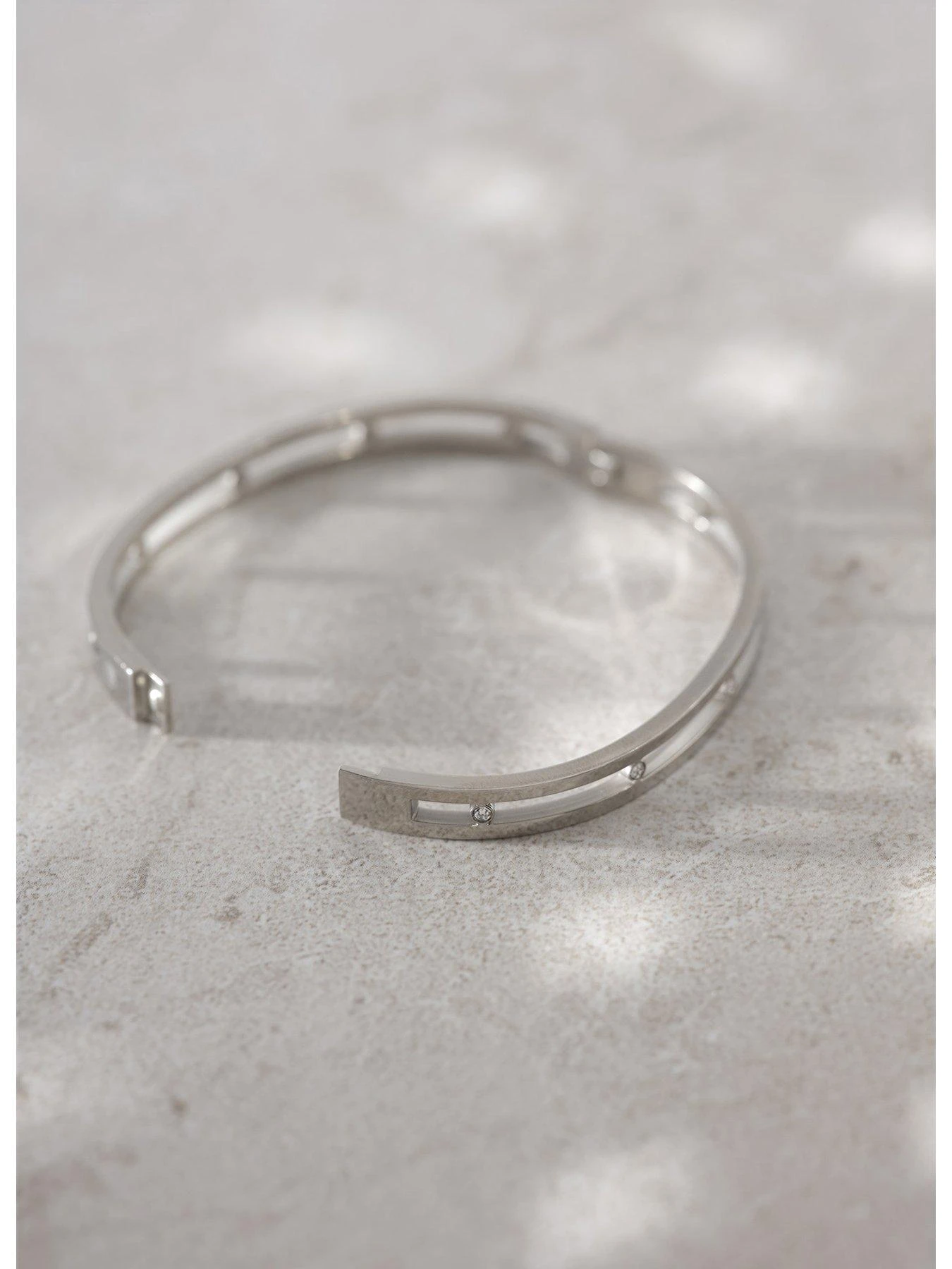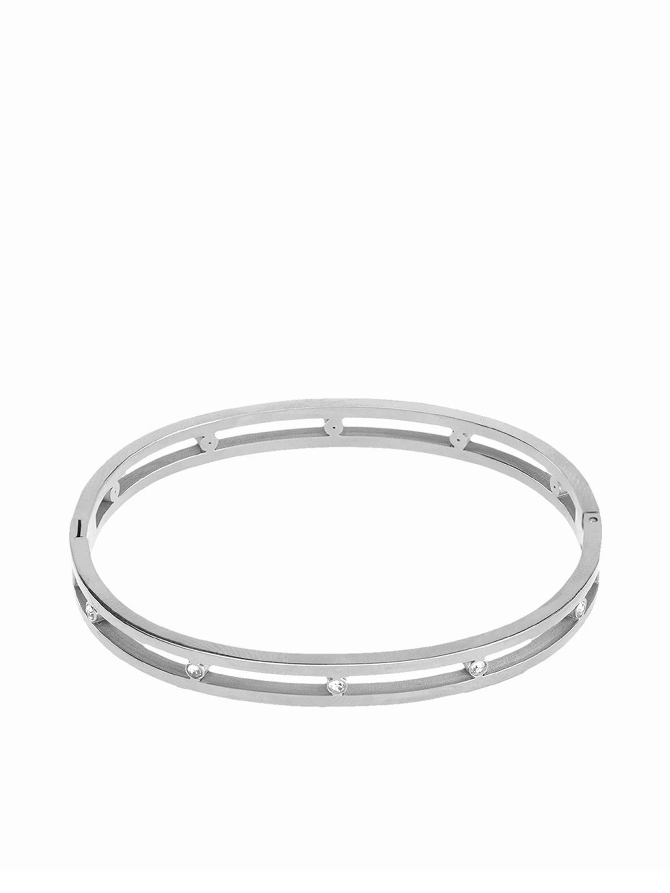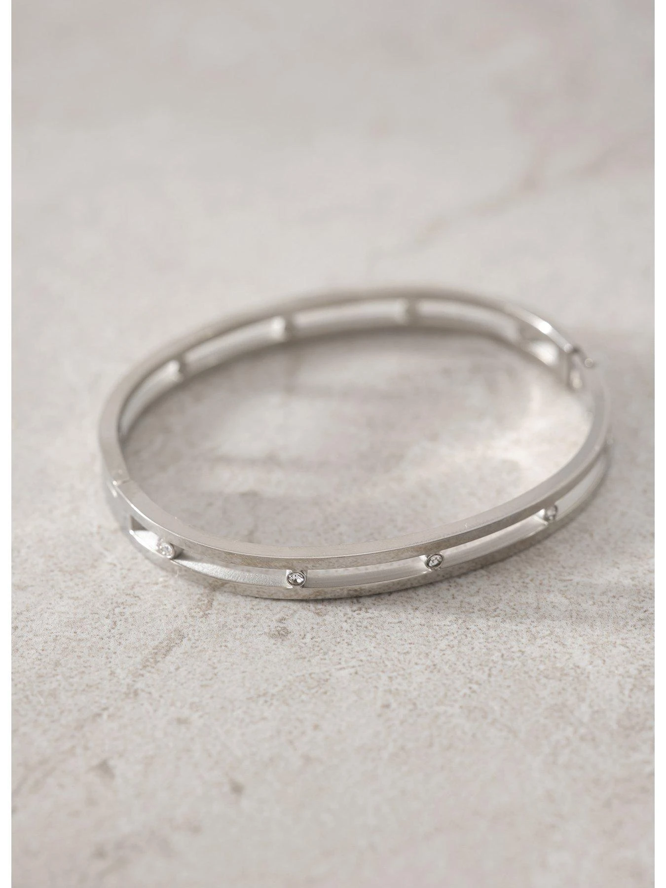Plated with genuine silver, this bangle is finished with glittering clear stones for a touch of sparkle – it’s the perfect finishing touch to add to any look.