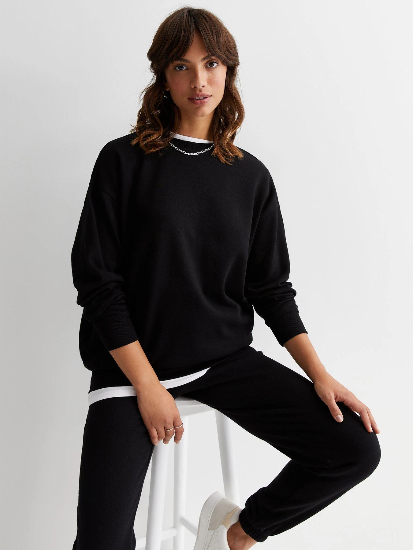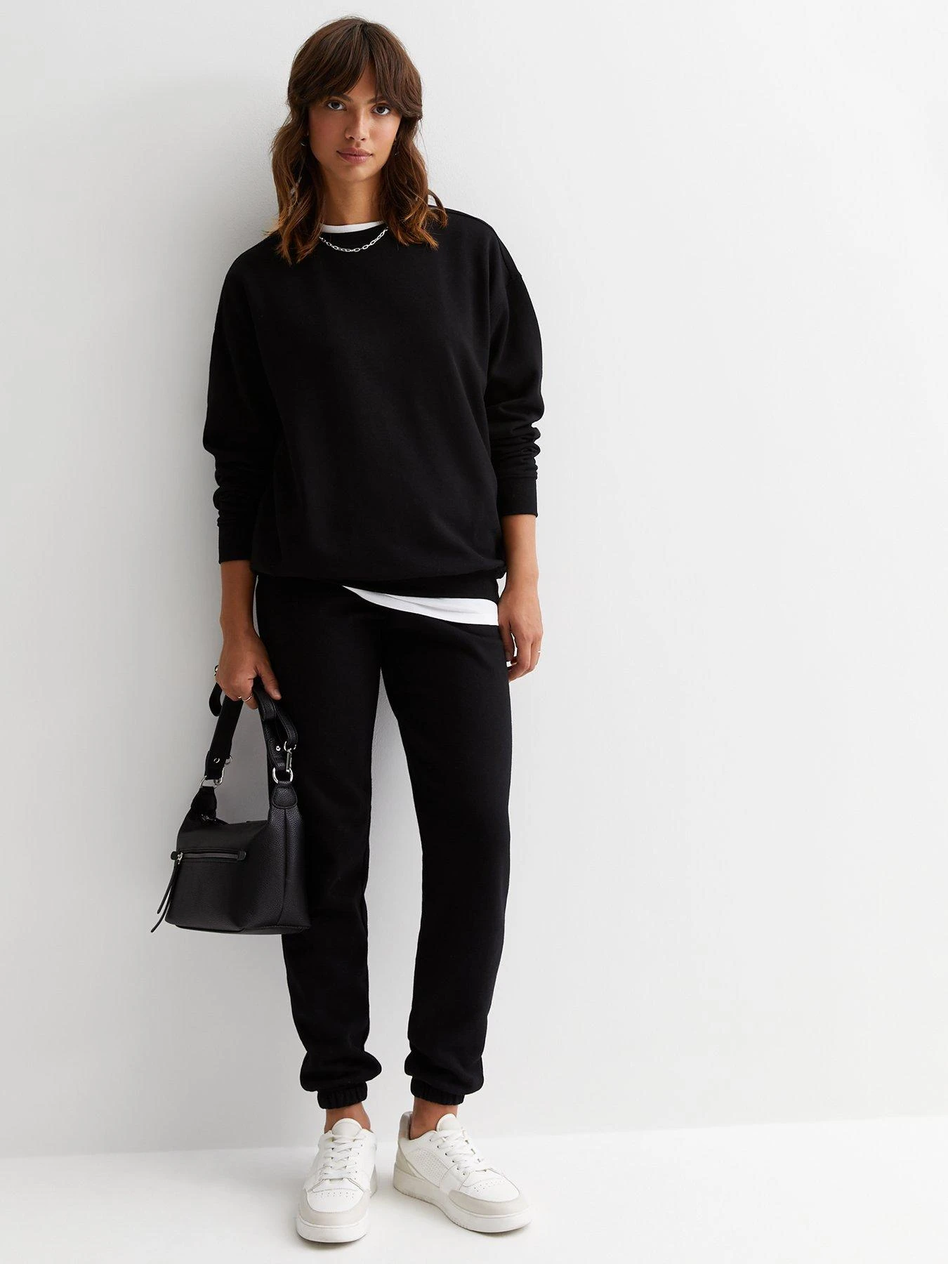 New Look Black Cotton Blend Crew Neck Sweatshirt