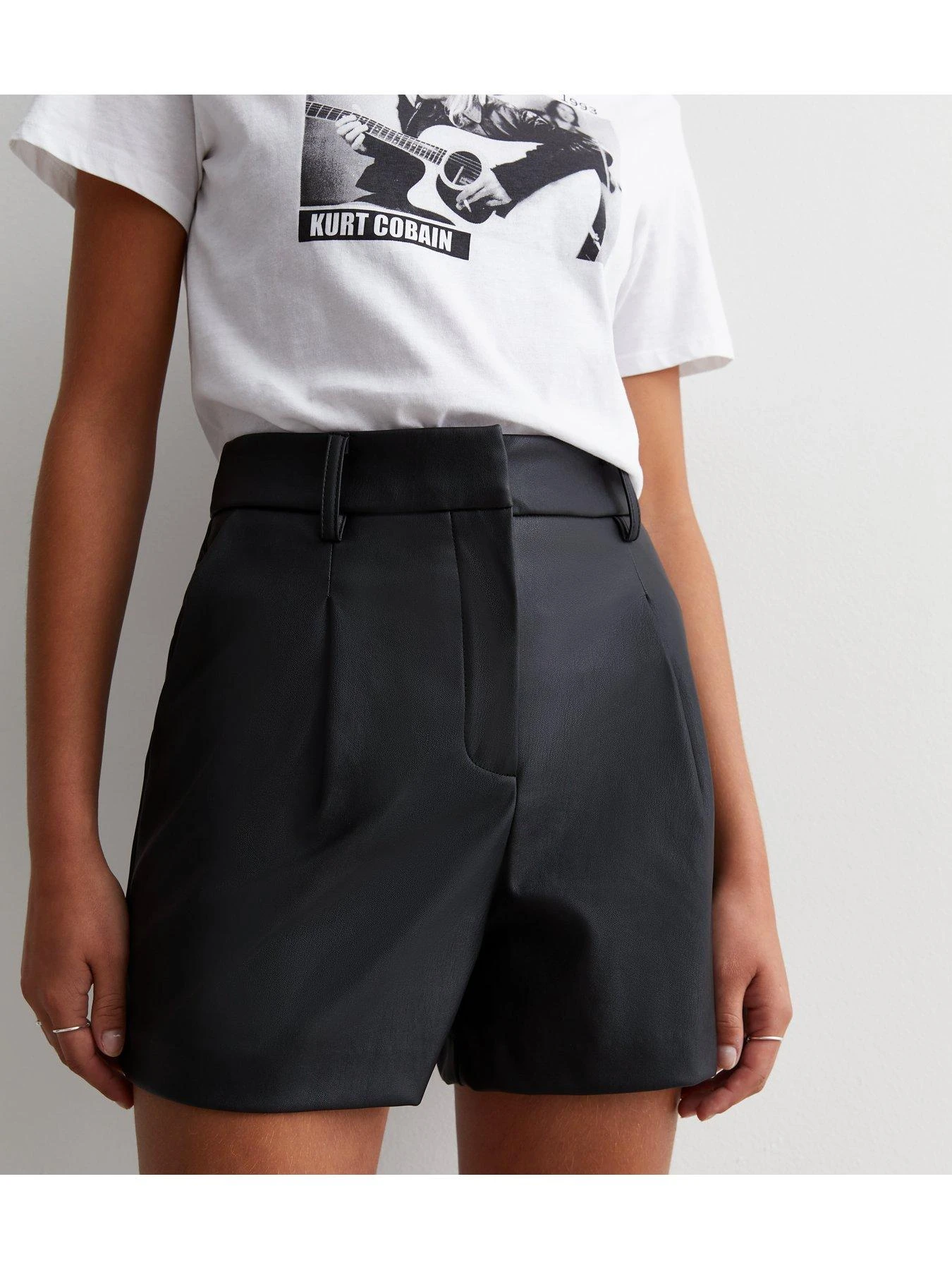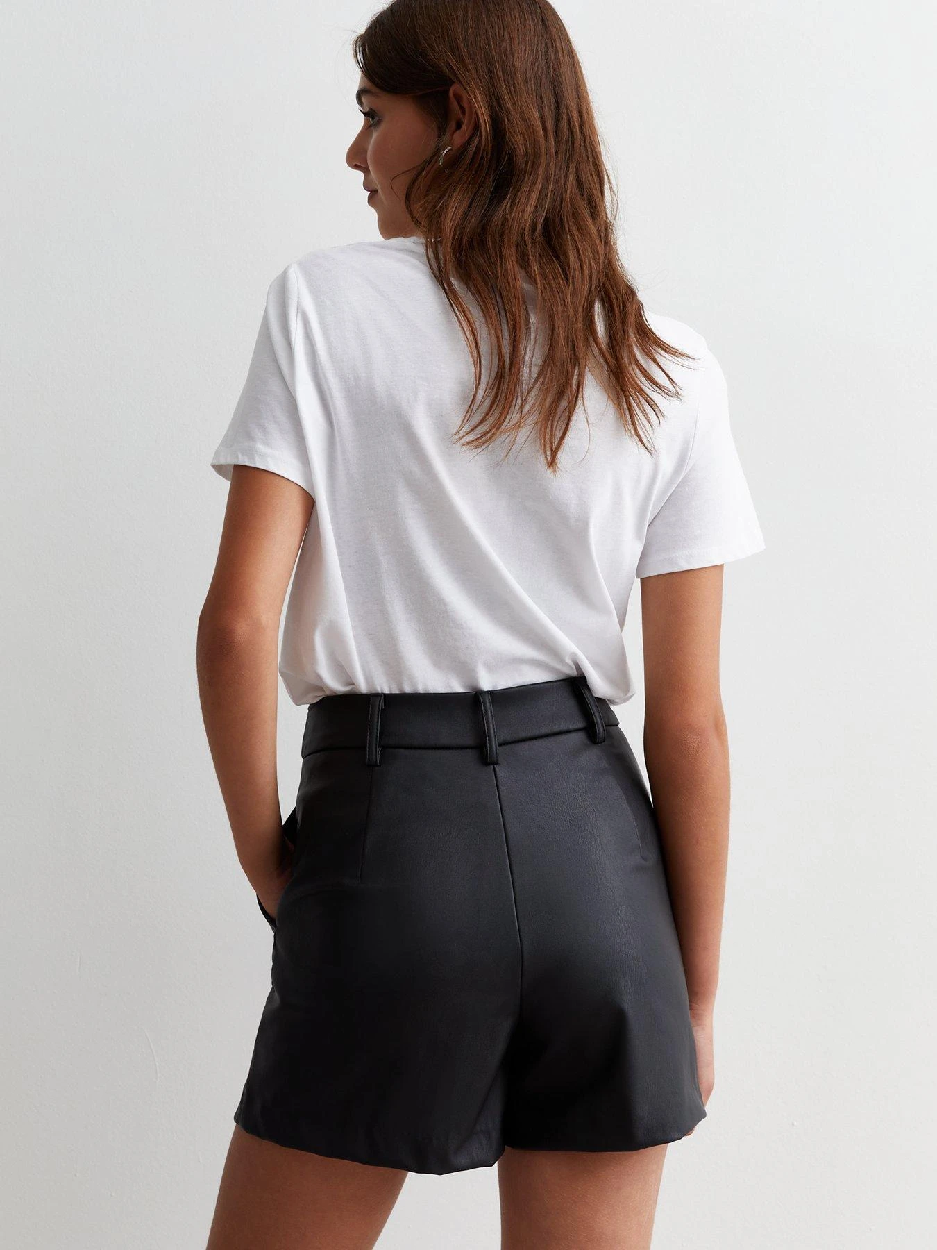 New Look Black Leather-Look Tailored Shorts