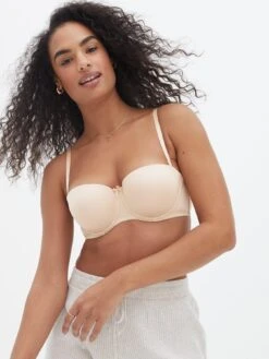 Tan Bow Front Strapless Bra