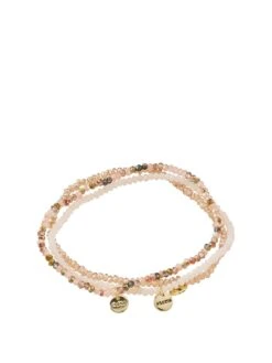 3-in-1 set of lustrous beaded bracelets made with small faceted glass beads in warm, earthy shades. With discreet gold-plated Pilgrim logo. Wear together or separately, or style them with even more bracelets for a unique and individual stacked look. The bracelets measure 17 cm and are strung with a durable Lycra elastic cord to fit most wrists.