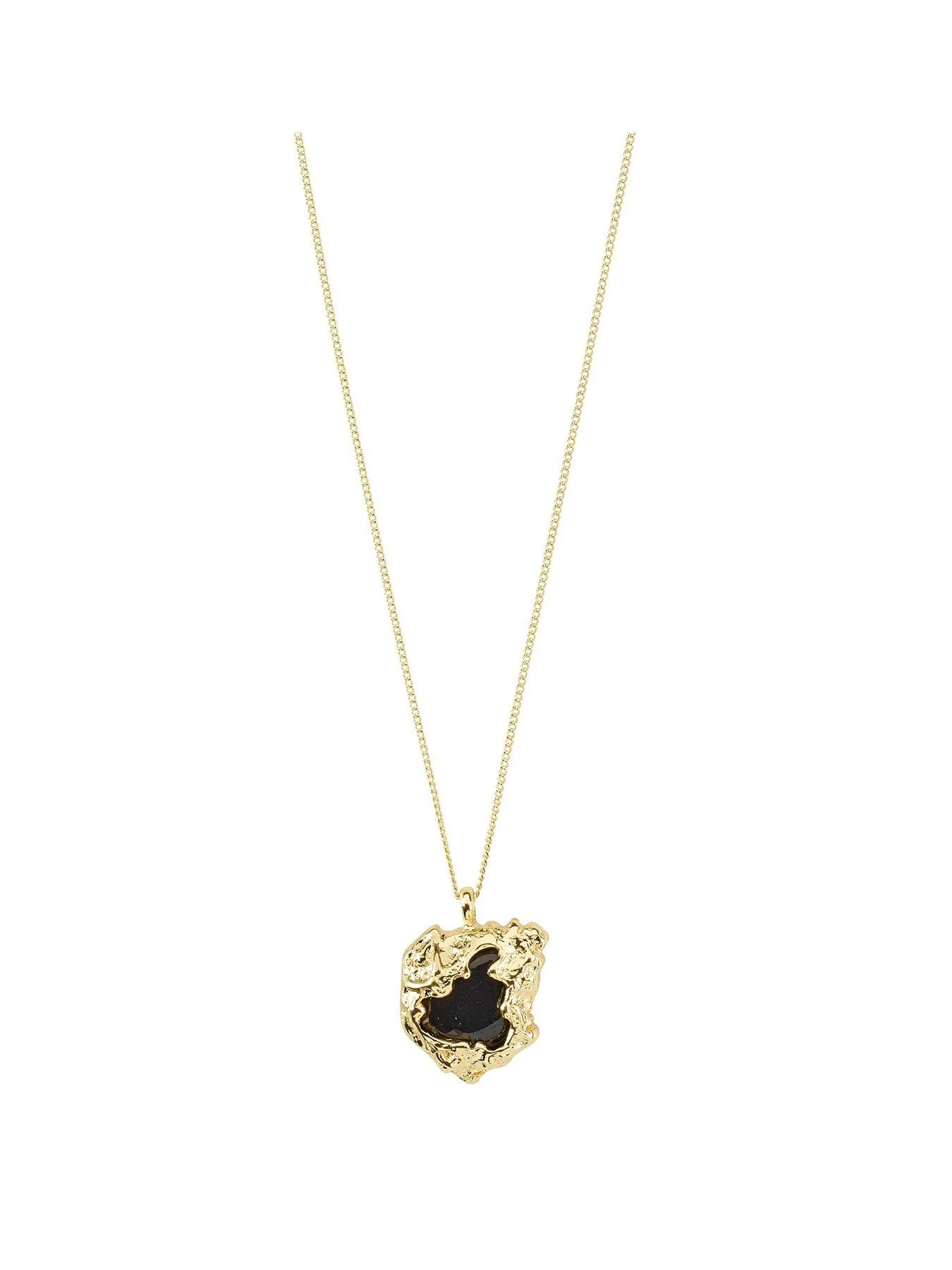 Find your own rhythm with the necklace from Pilgrim’s RHYTHM series. The black onyx of the pendant gives a natural depth to the handcrafted, gold-plated shapes. A recycled item made from a min. of 75% recycled material that gives your look that lux bohemian style. Measures 40 cm + 12 cm extension chain.