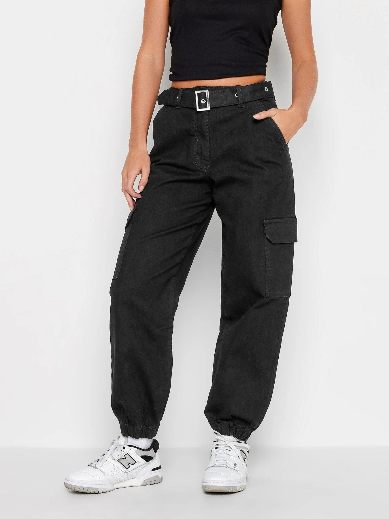 Belted,Cargo style,Side pockets,Elasticated cuffs,Made from a stretch denim fabric,98% cotton, 2% elastane,Inside leg length from (approx): 27″,Machine washable,