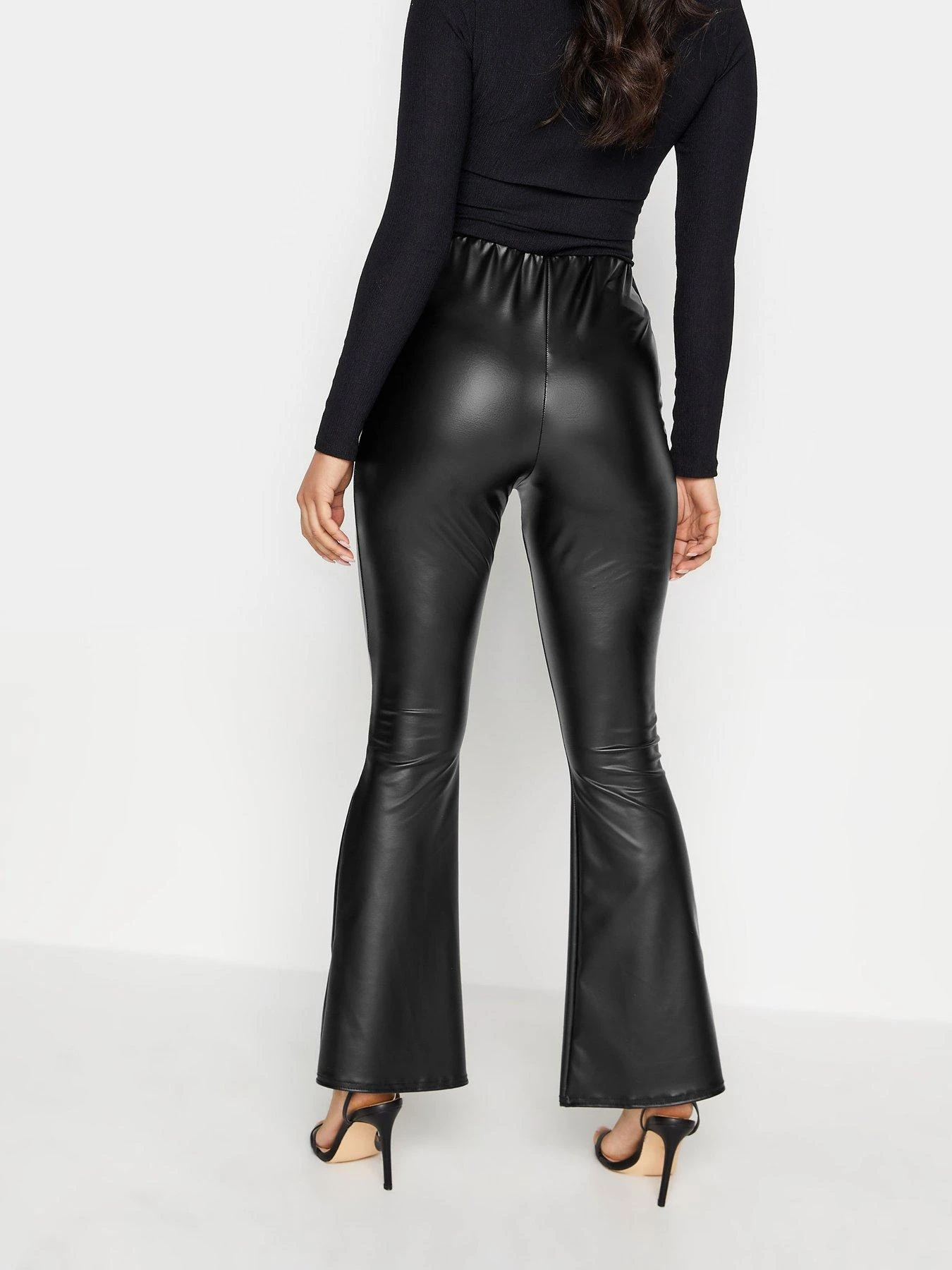 PixieGirl Petite Black Pu Kick Flare Trousers