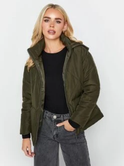 Quilted,Long sleeves,Hooded,Two functional pockets,Zip fastening,Made from a polyester fabric,95% polyester, 5% elastane,Length from (approx): 63cm/24″,Machine washable,