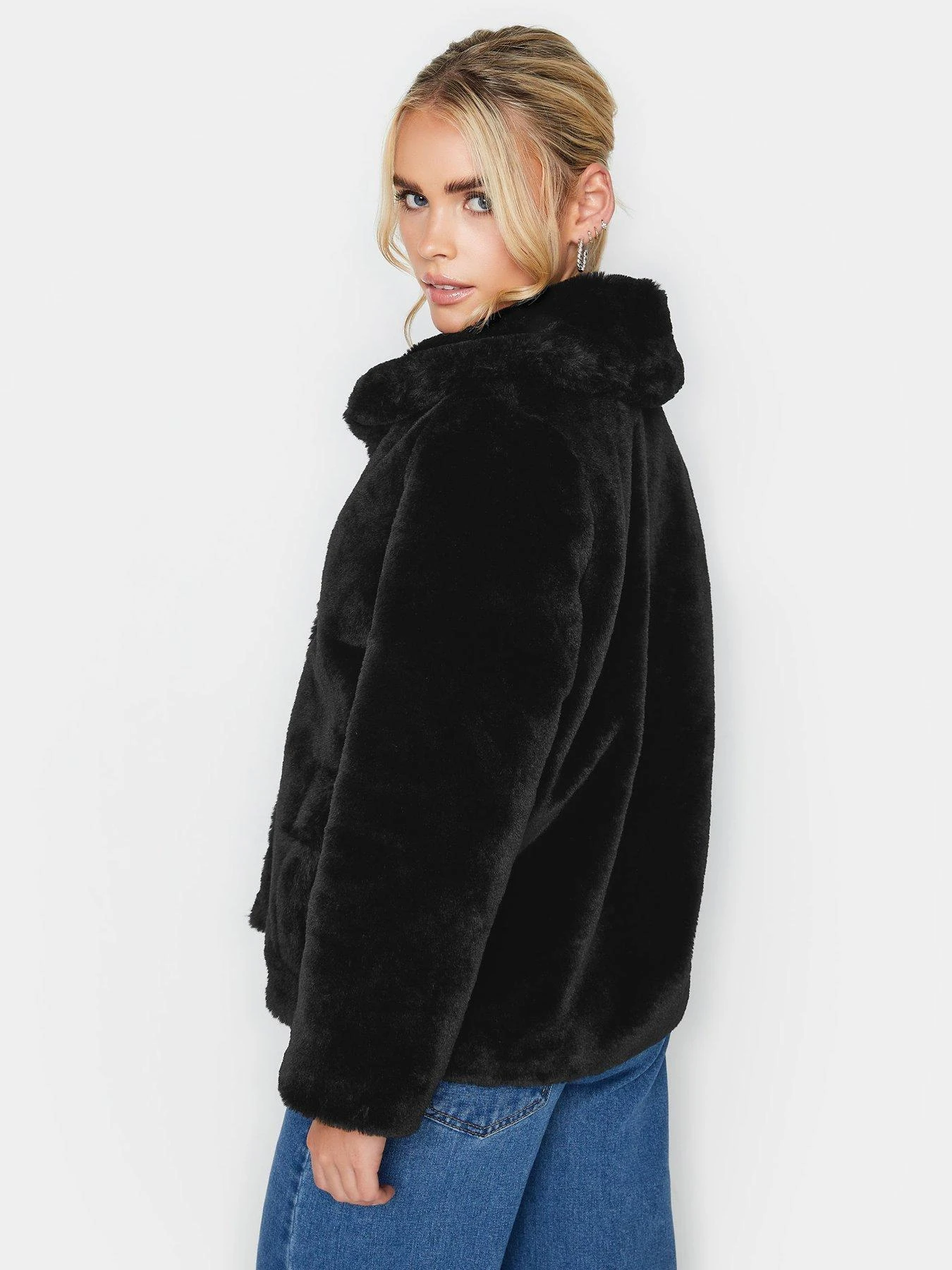 PixieGirl Petite Plush Faux Fur Coat – Black